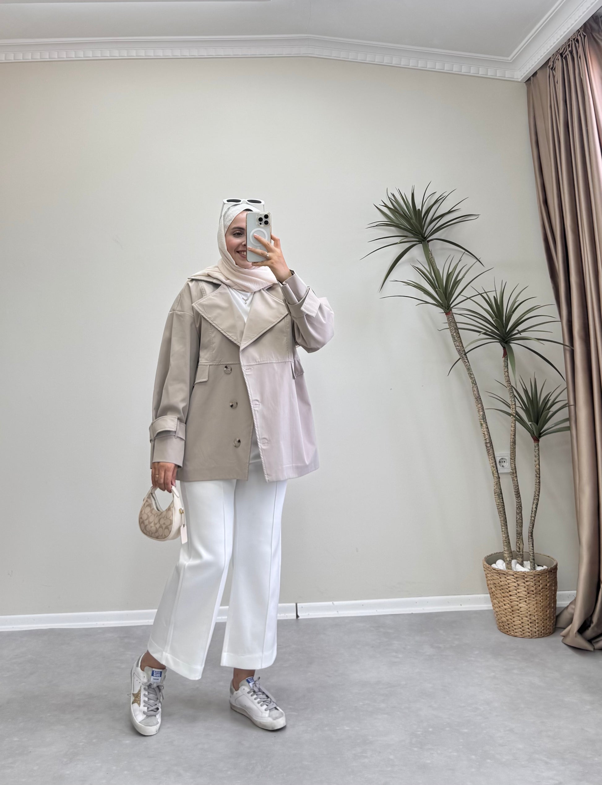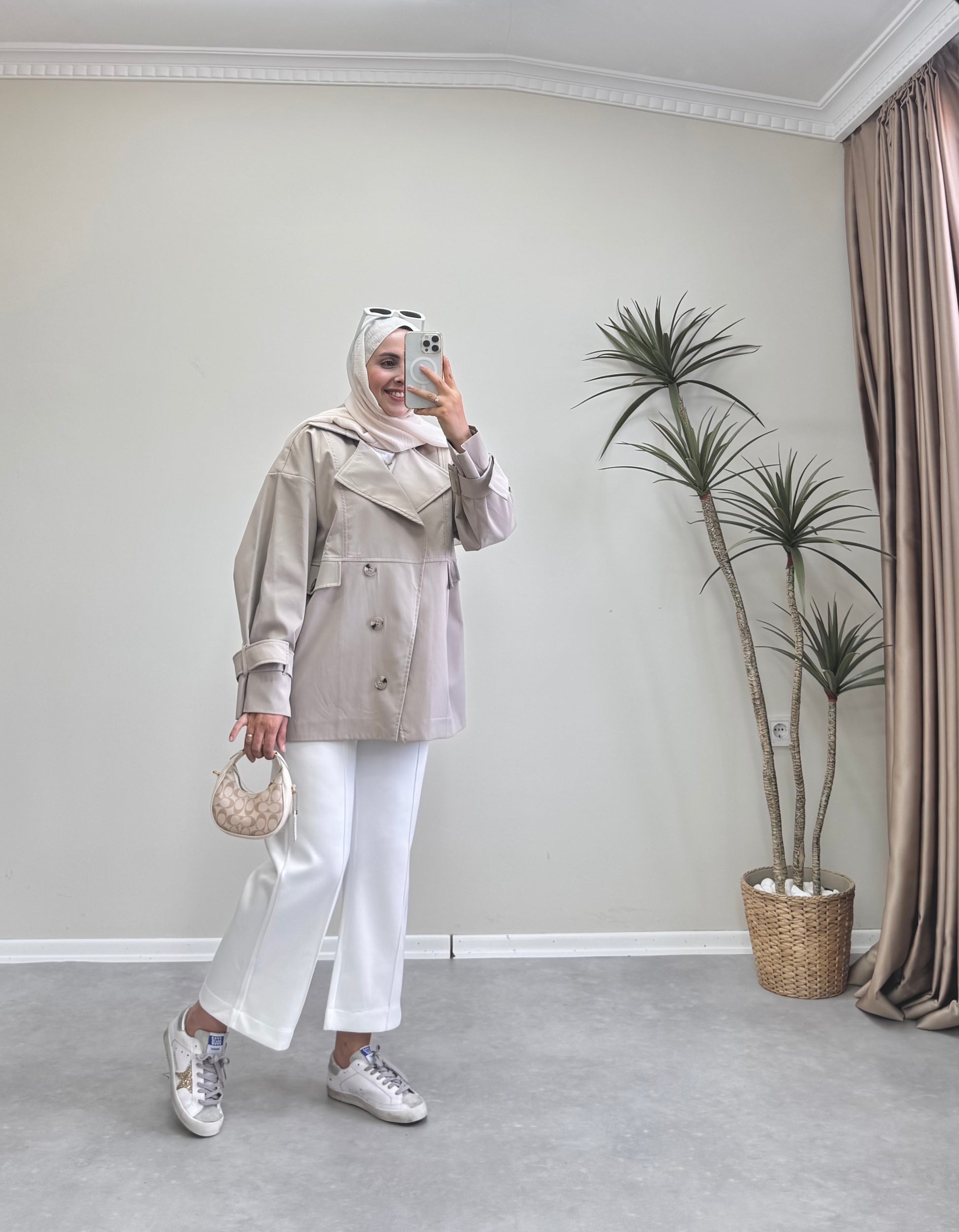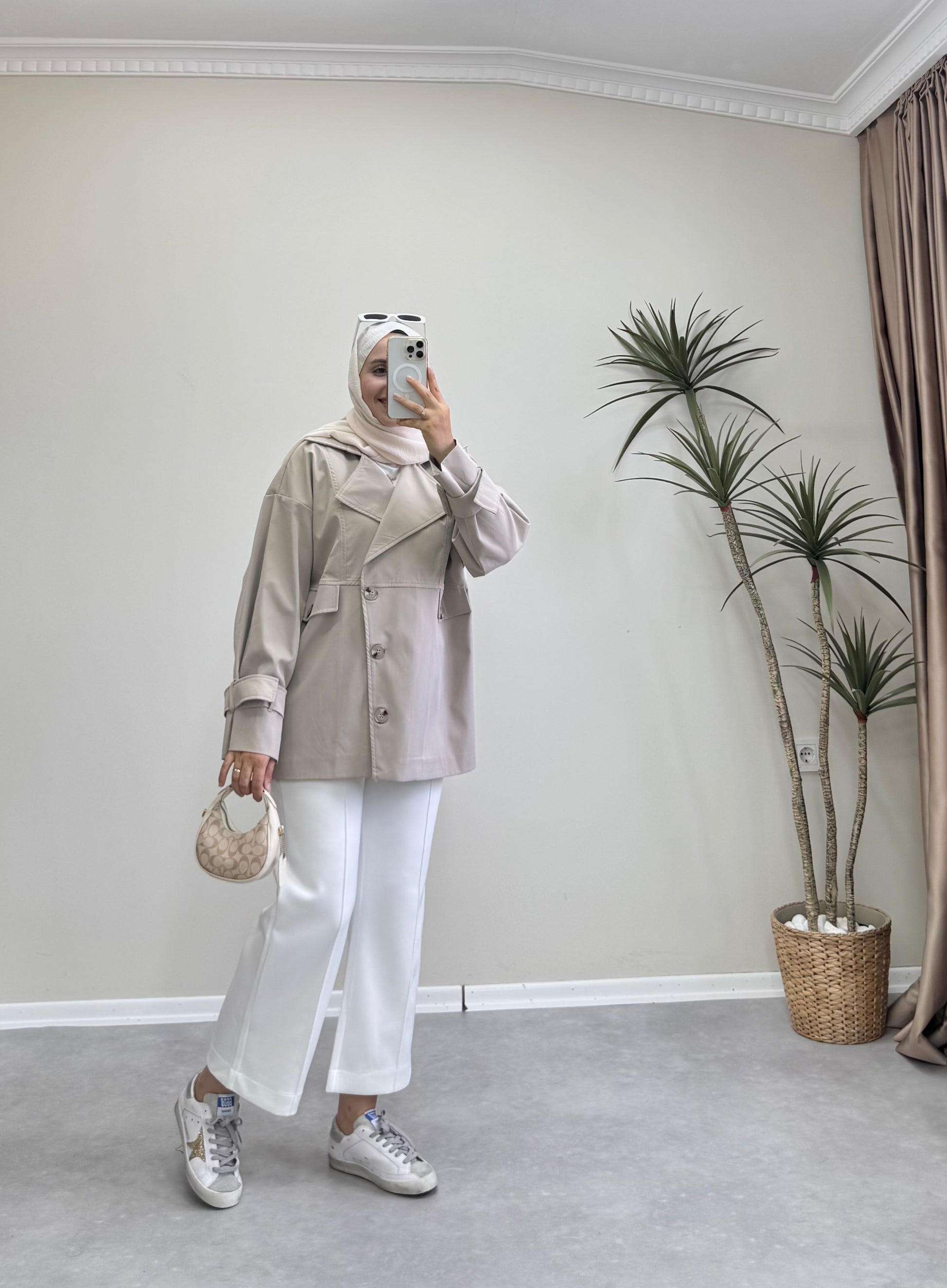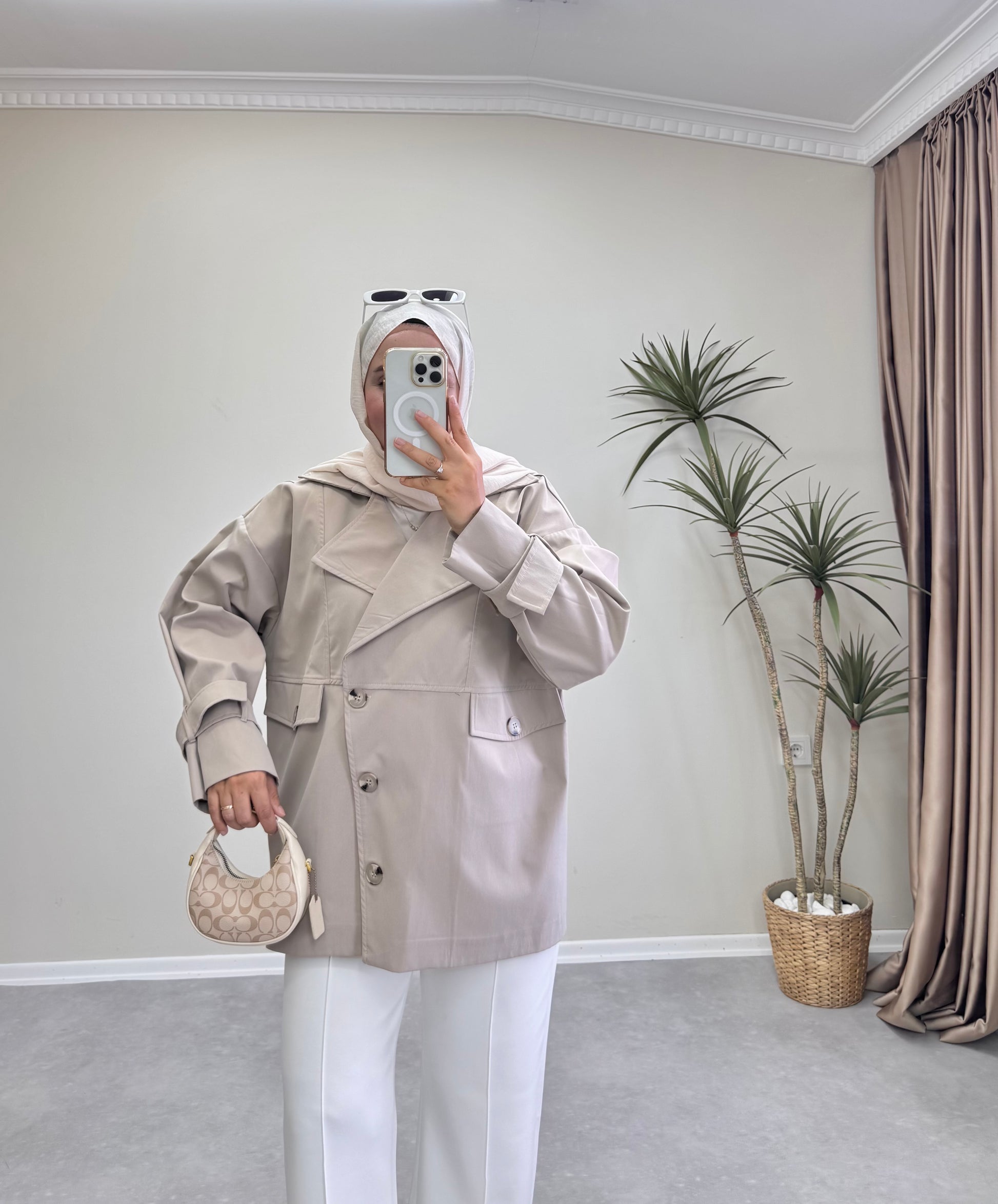 Komple astarlıdır. Oversize görünümü vardır. Rahat kalıp. Boy 75 cm.