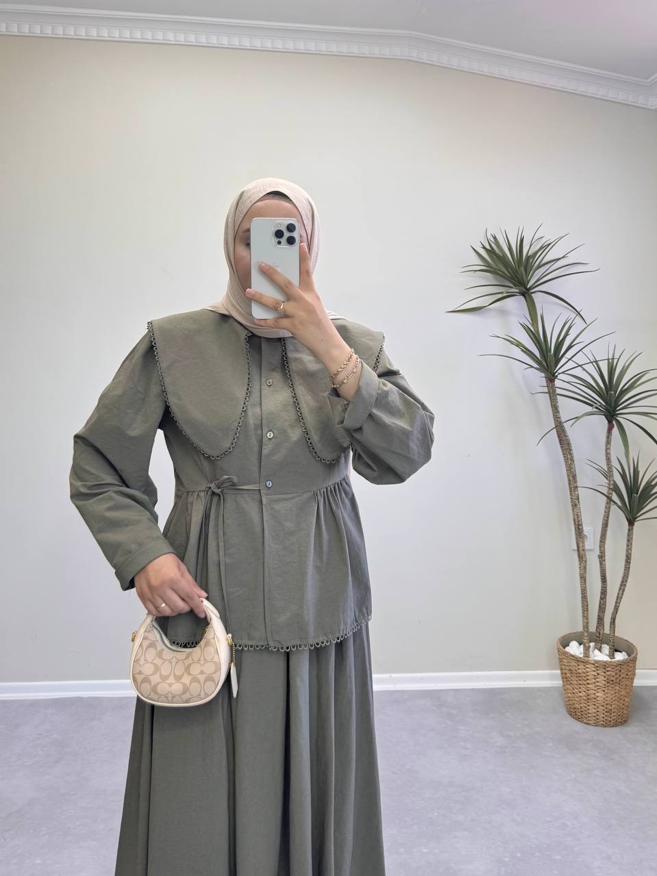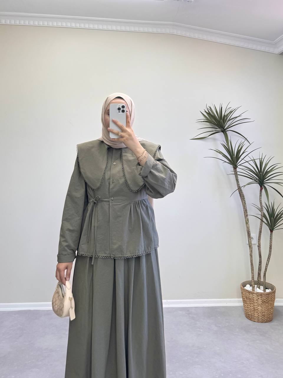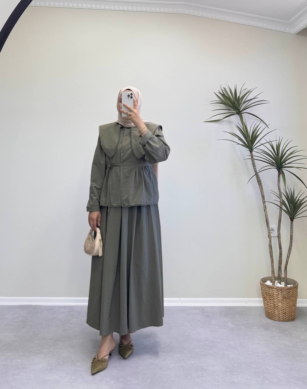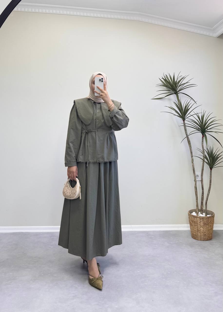 1823 - Uzun Yakalı Etek Takım - Haki Yeşil