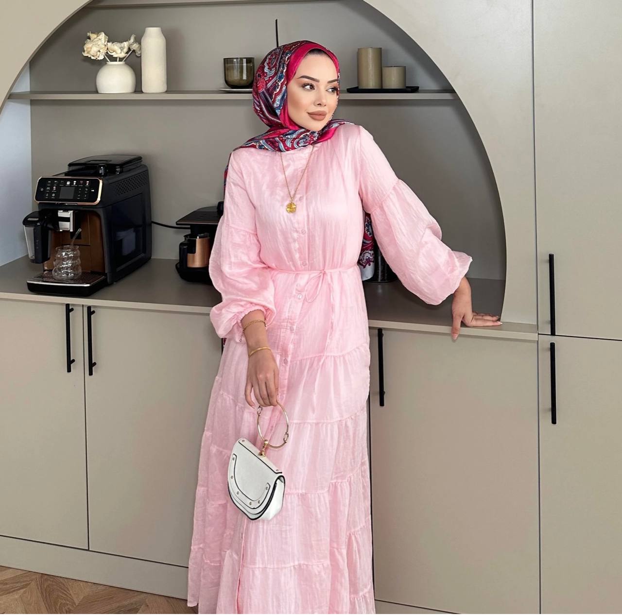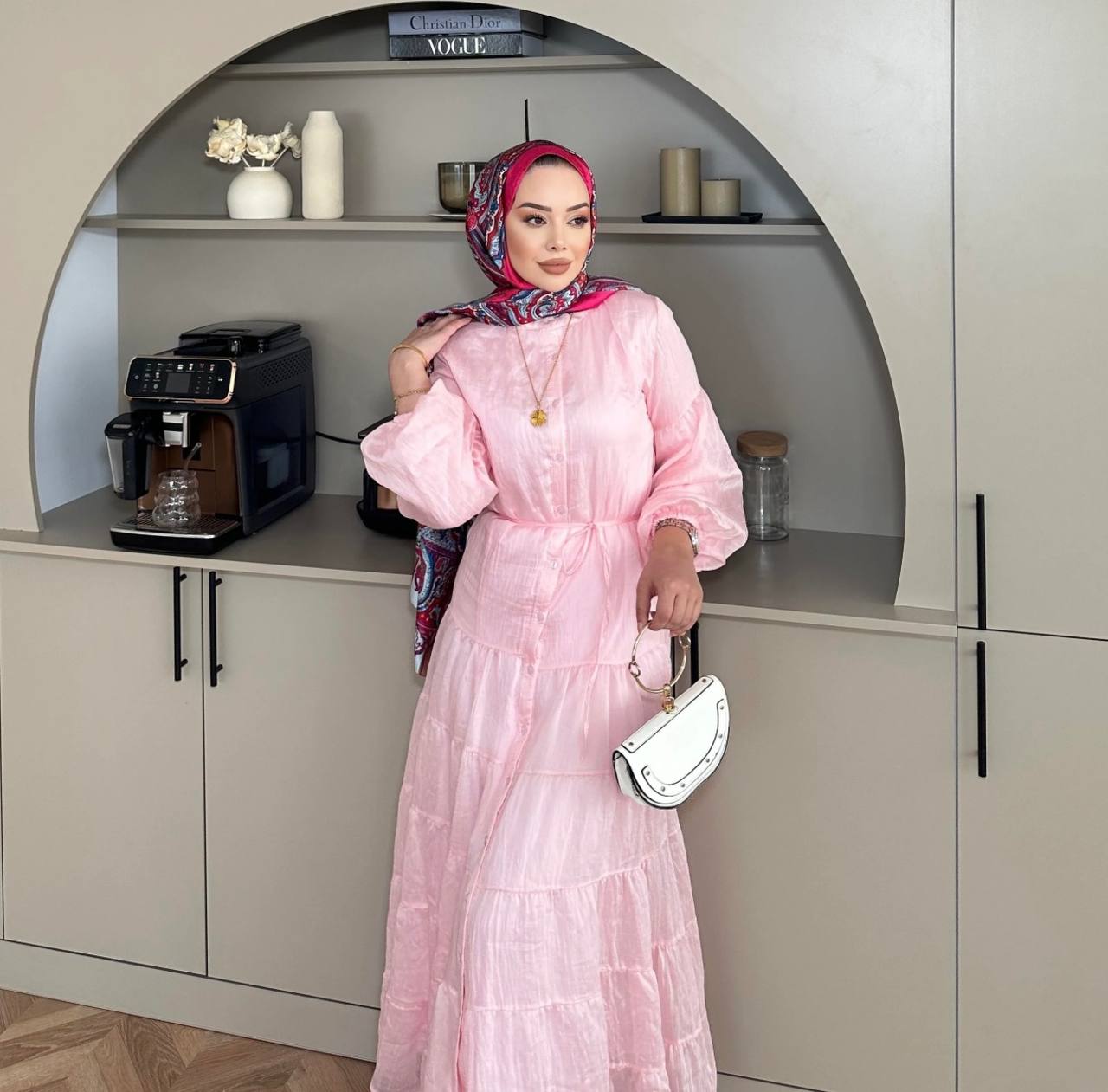 Elbise boy 137 cm dir. Ön kısmı açılabilir düğmelidir. Bir adet seyyar kuşağı mevcuttur. Tam kalıptır. İç kısmı astarlıdır.