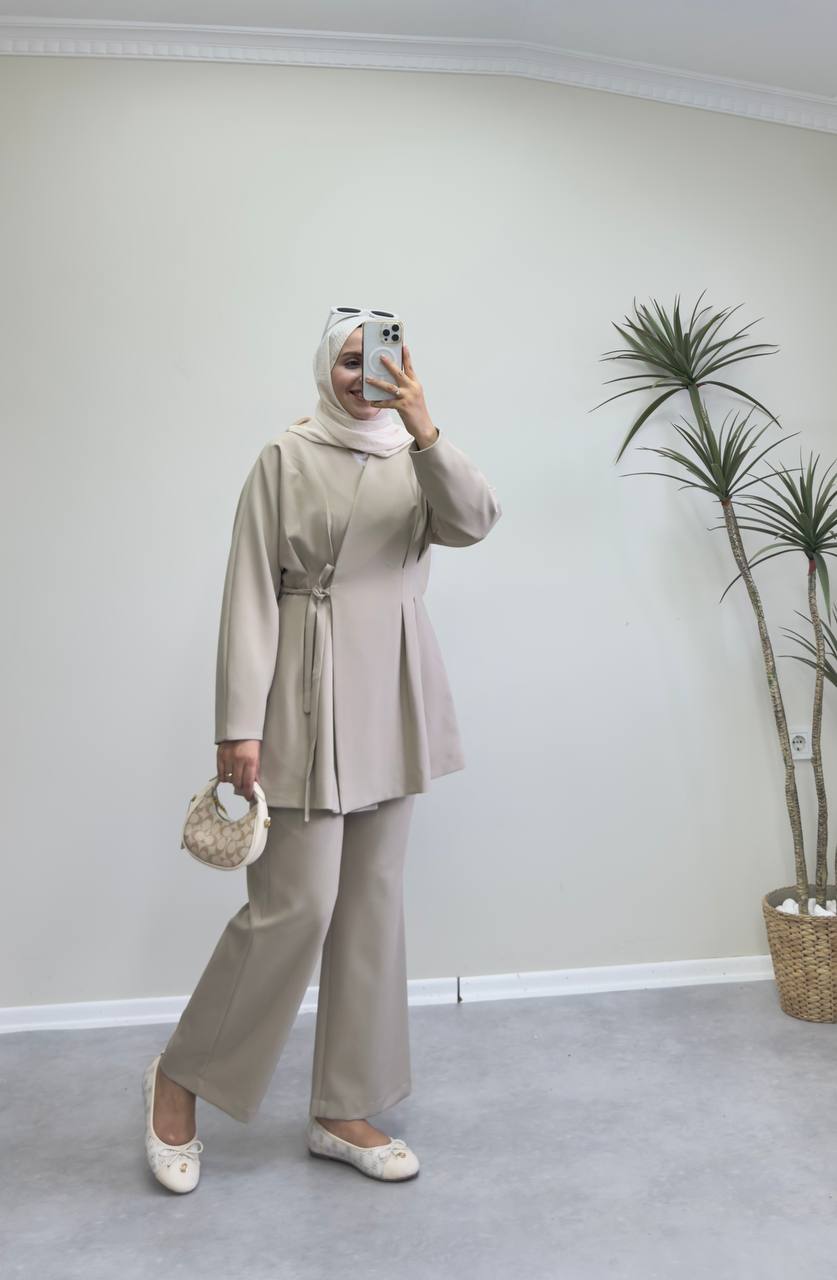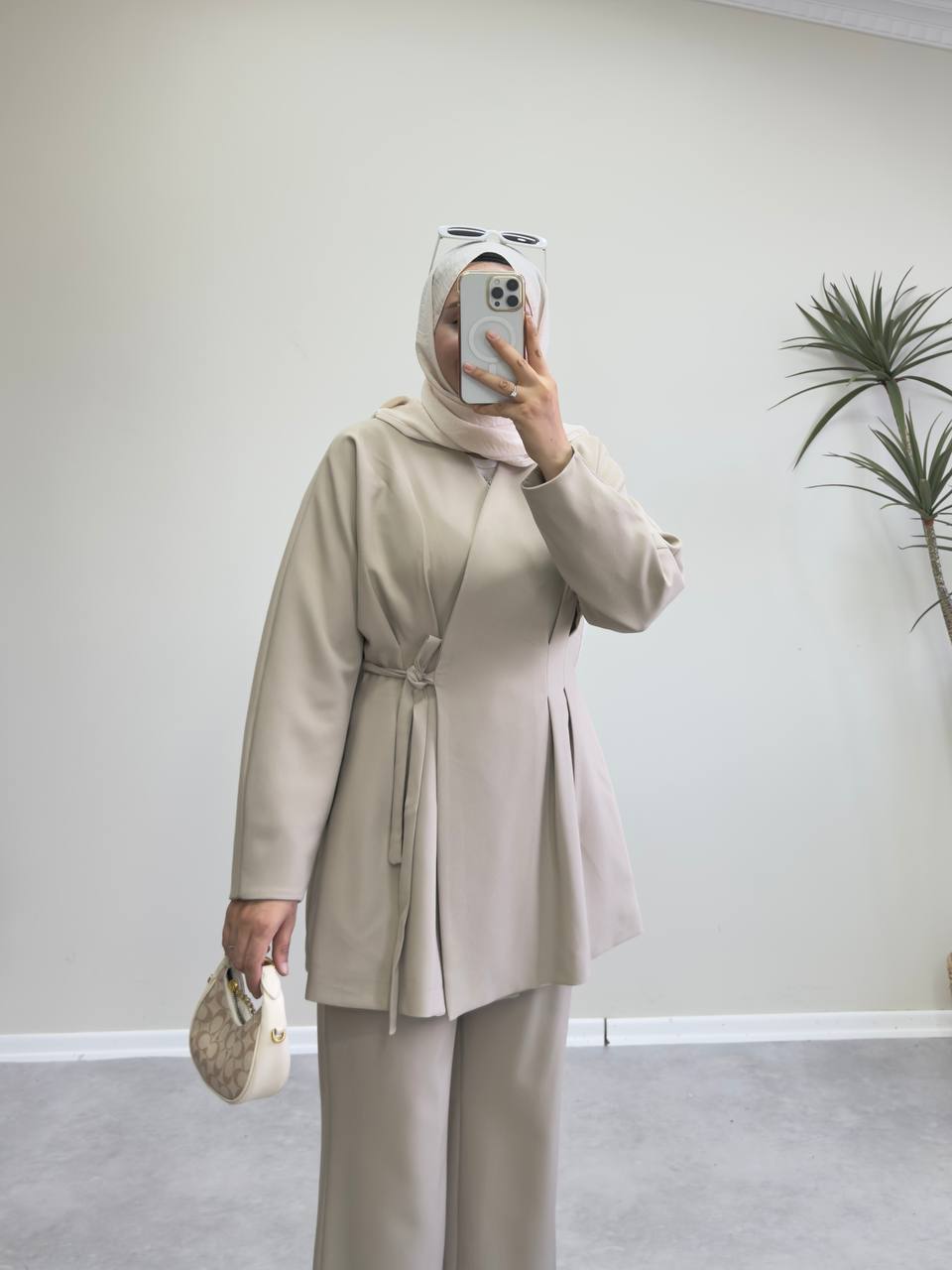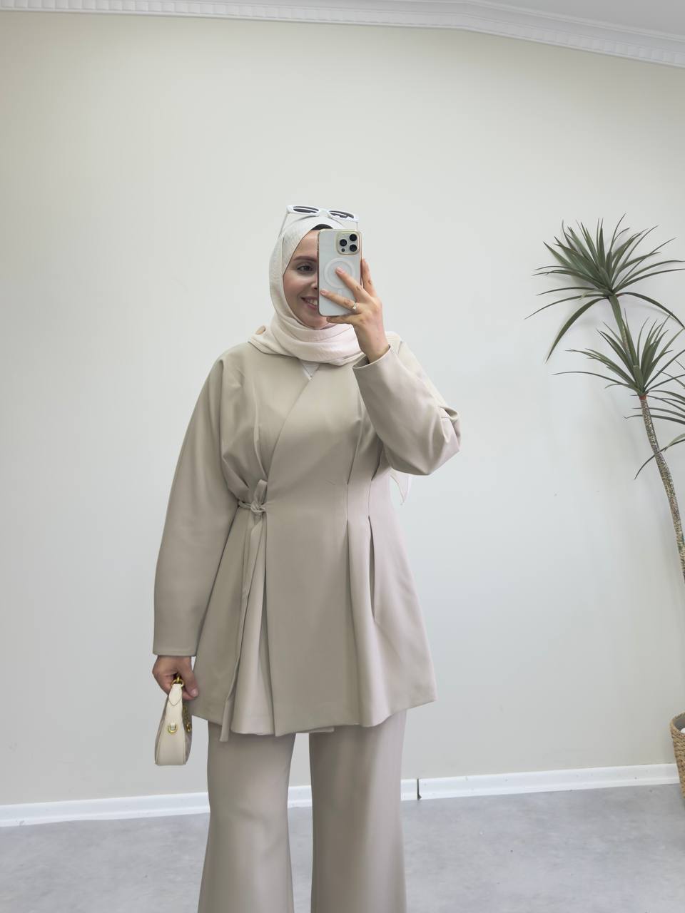 Krep kumaştan üretilmiştir. Ceket iç kısmı komple astarlıdır boy 80 cm dir. Pantolon beli lastiklidir boy 100 cm dir. Tam kalıptır.