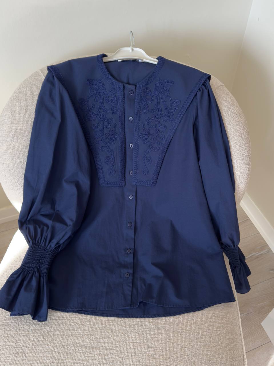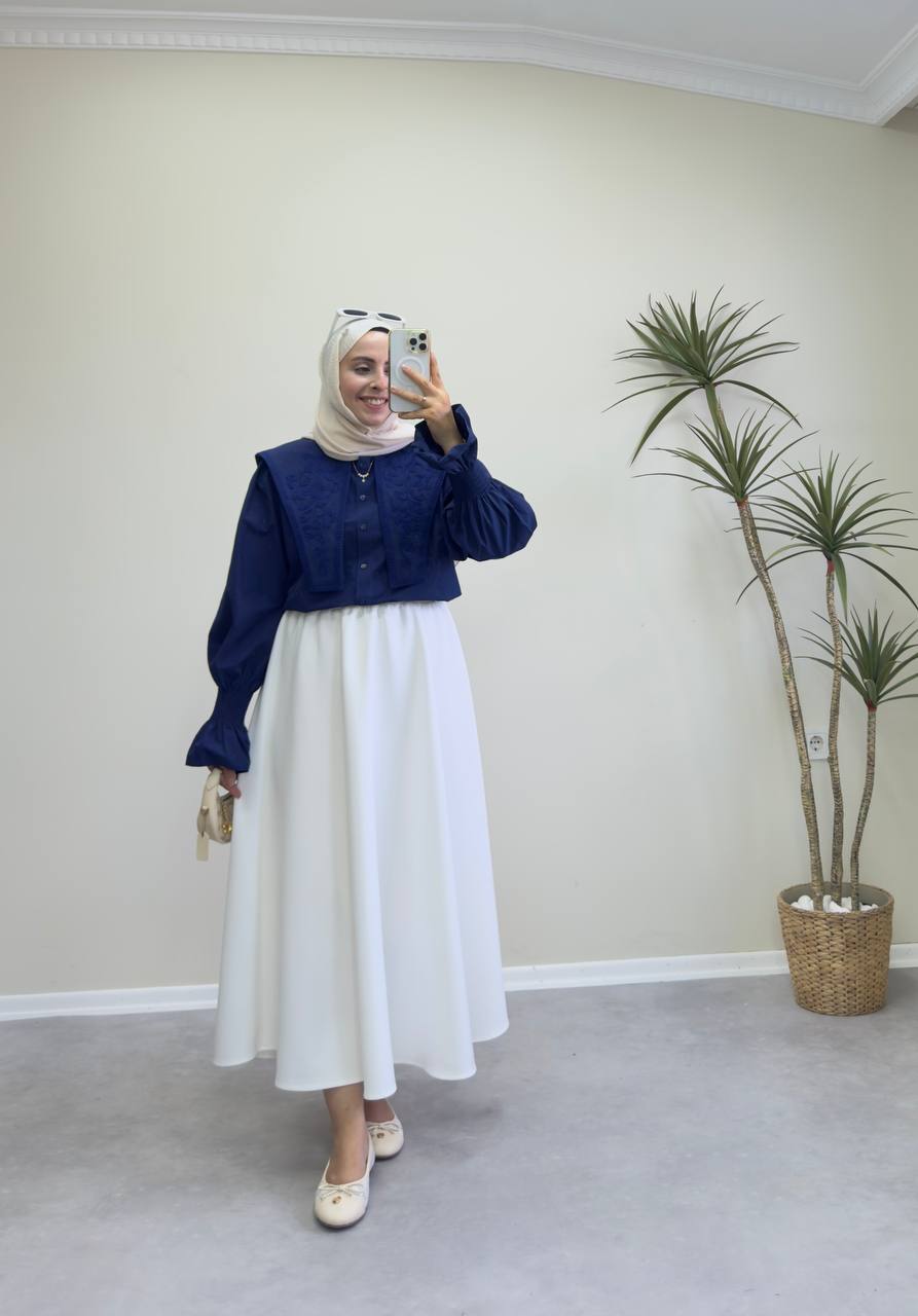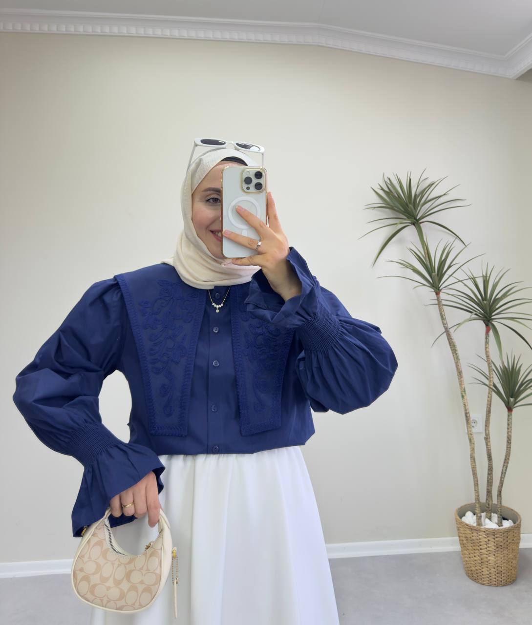 2363 - Yakası Nakışlı Gömlek - Lacivert