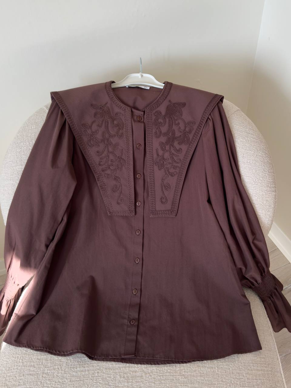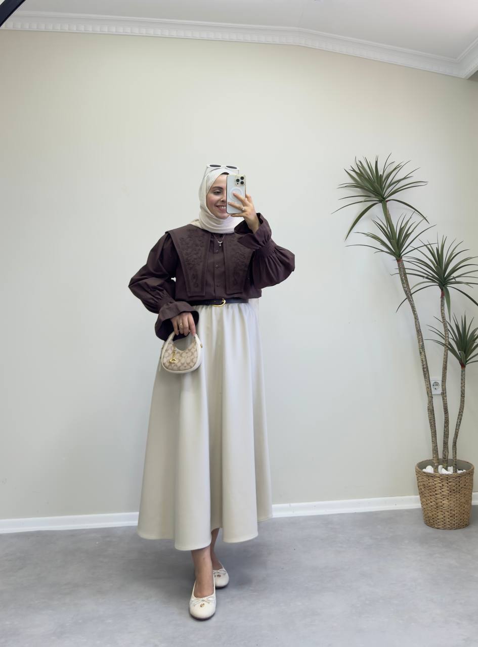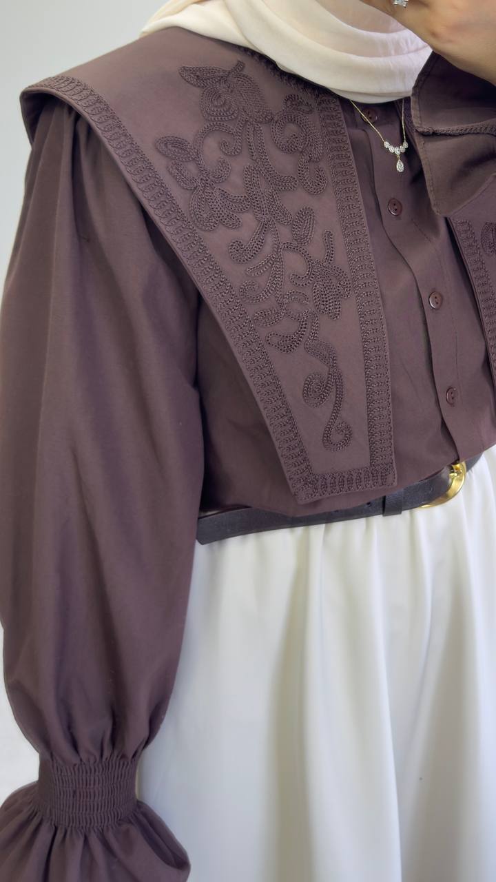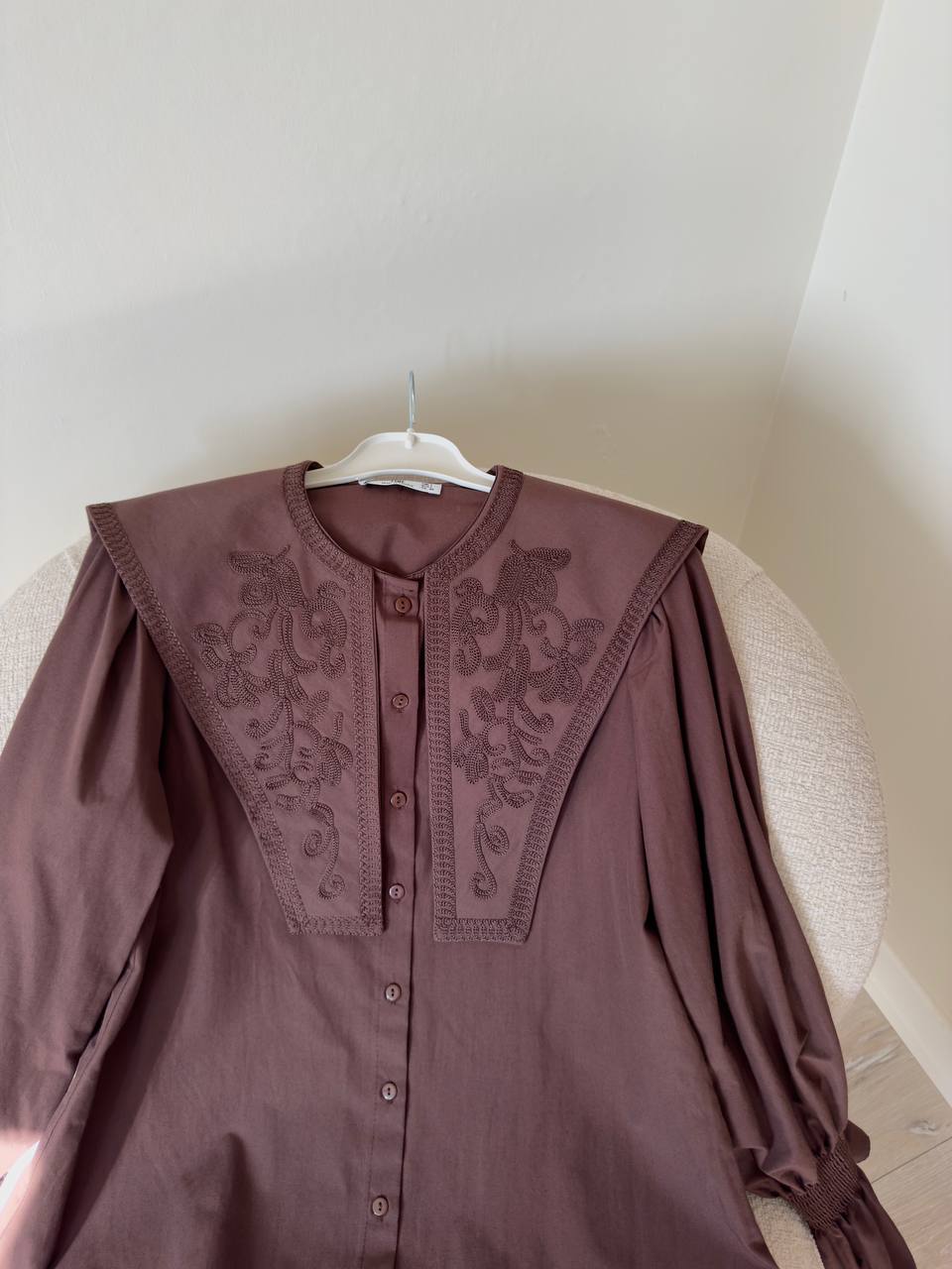 2363 - Yakası Nakışlı Gömlek - Acı Kahve