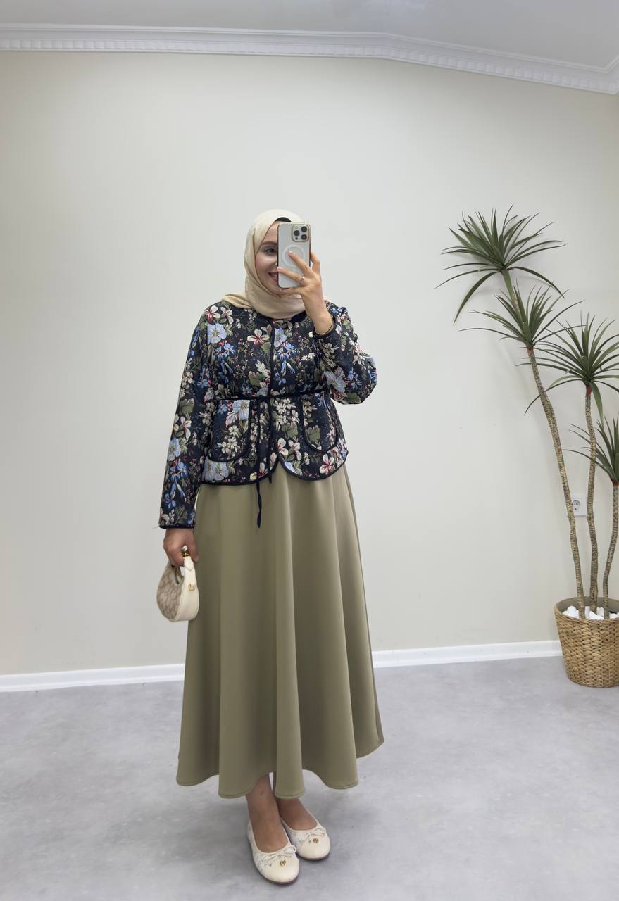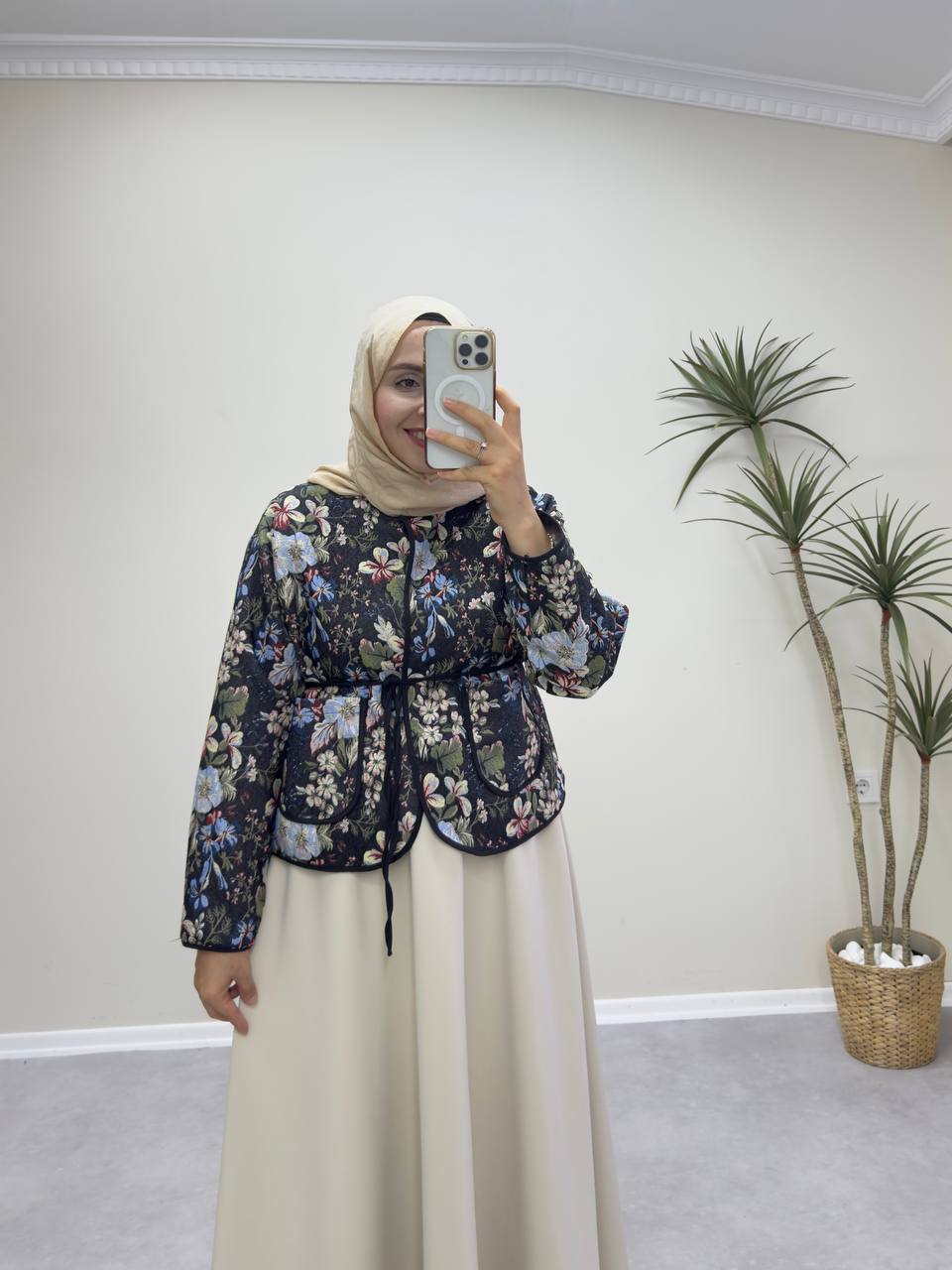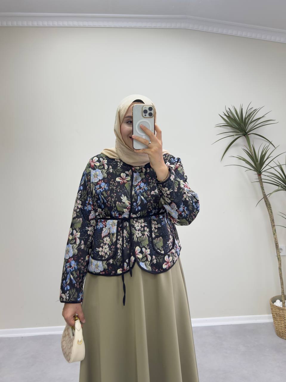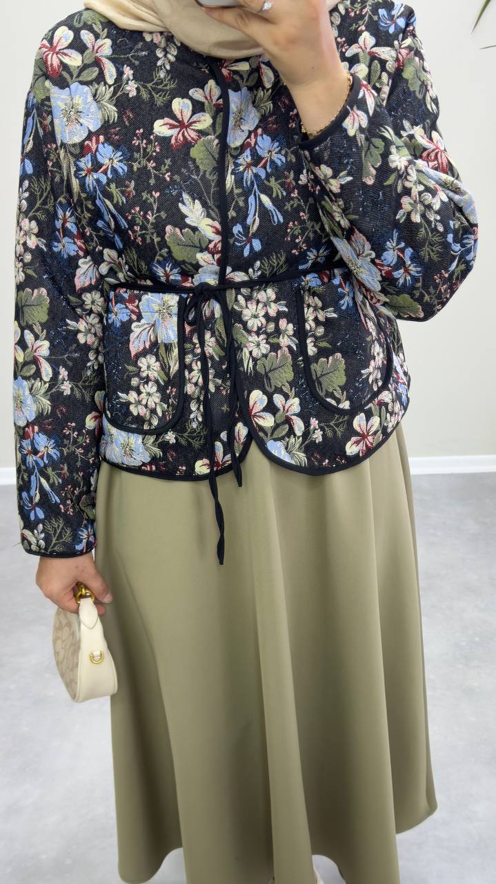 2370 - Jakarlı Ceket - Siyah Çiçekli