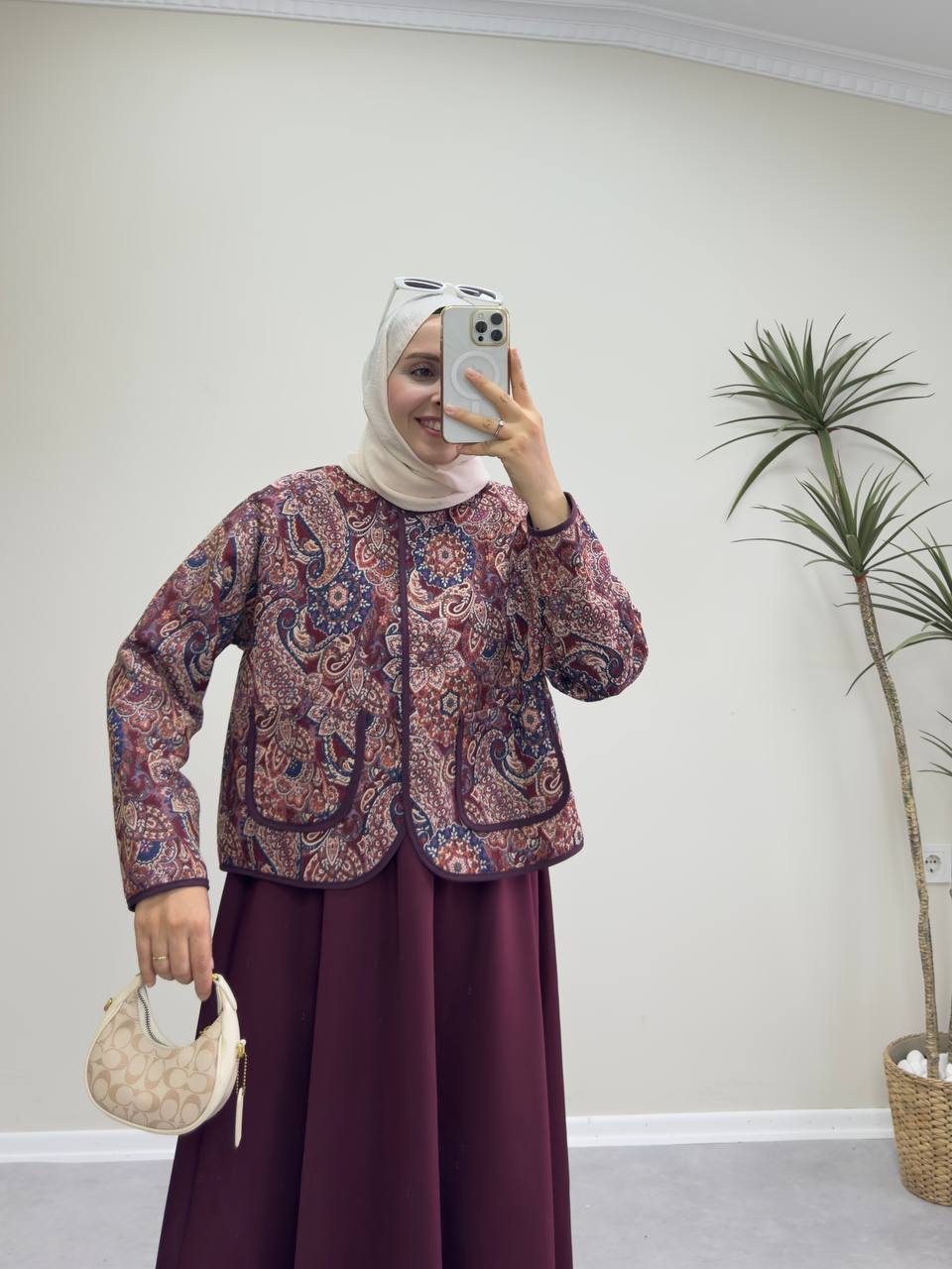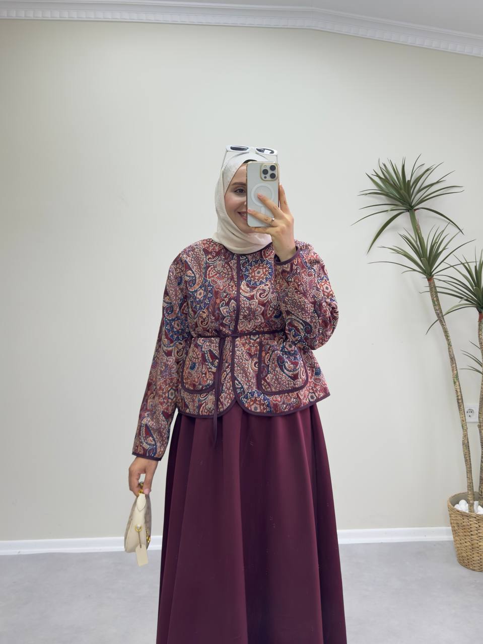 Manken ölçüleri 58 kg 165 cm boy 1 beden tercih etmiştir.