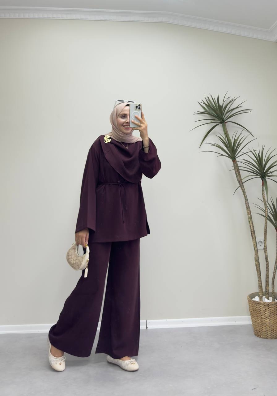 Premium krep kumaştan üretilmiştir. Sırt kısmı fermuarlıdır. Pantolon 103 cm, Üst 75 cm dir. Bir adet seyyar kemeri mevcut. Broş iğnelidir tercihe göre çıkartılabilir.