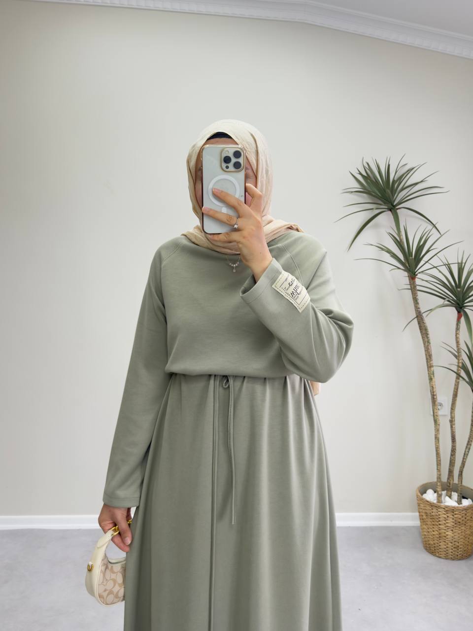Oysho kumaştır. Elbise boy 140 cm. Bir adet seyyar kemeri mevcuttur.