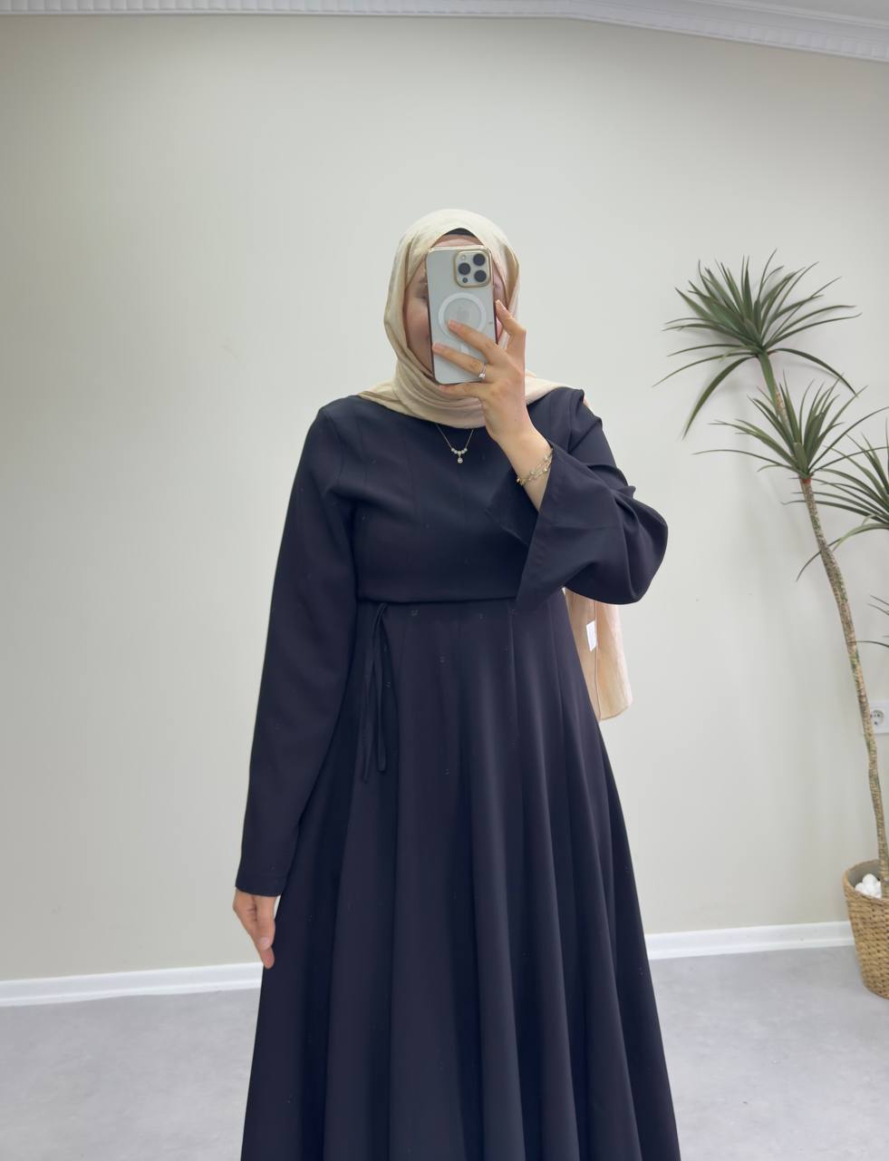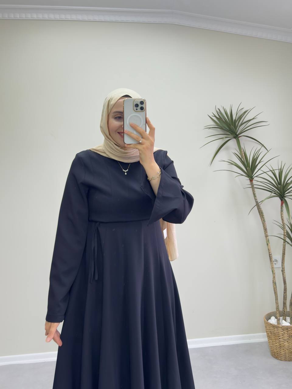 Krep kumaştır. Elbise boy 138 cm bir adet seyyar kemeri mevcut.