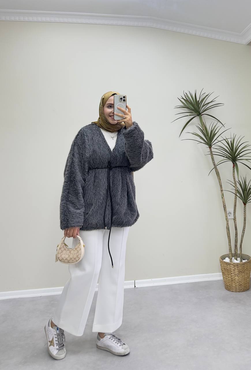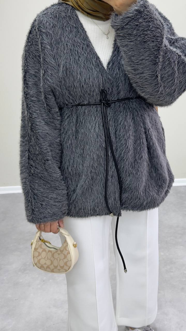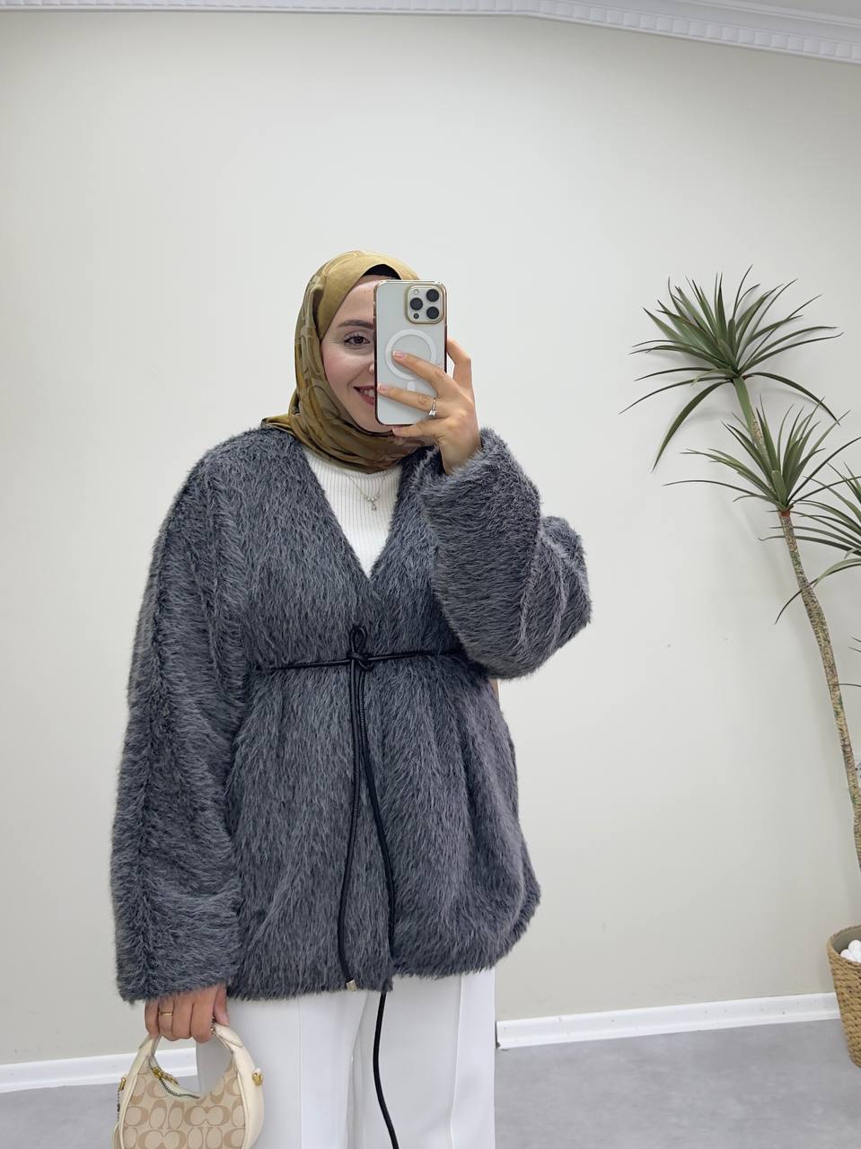Yün kumaştır. Astarlı Ceket boy 70 cm dir. Bir adet deri seyyar kemeri mevcuttur. Standart bedendir 36-44 beden uyumludur.