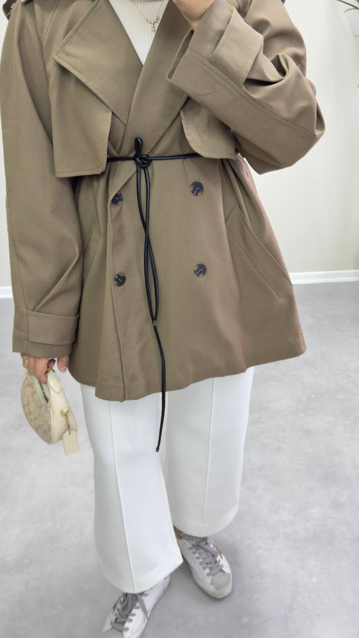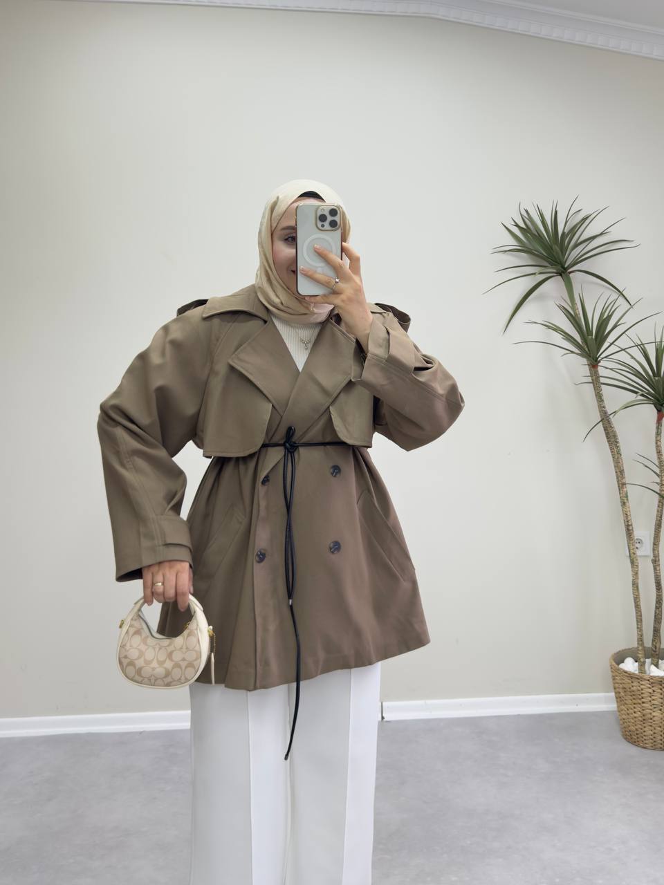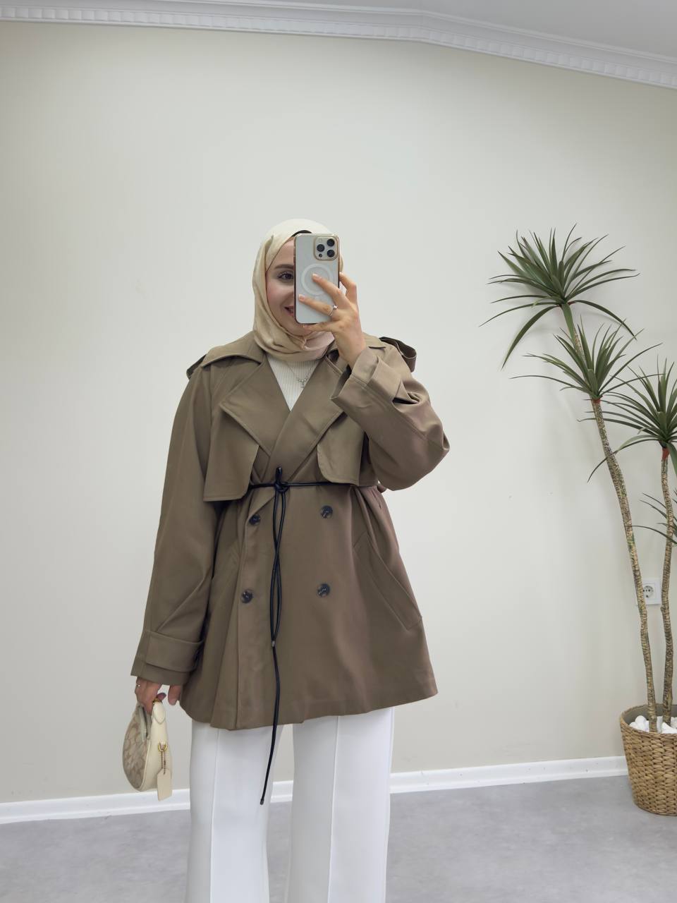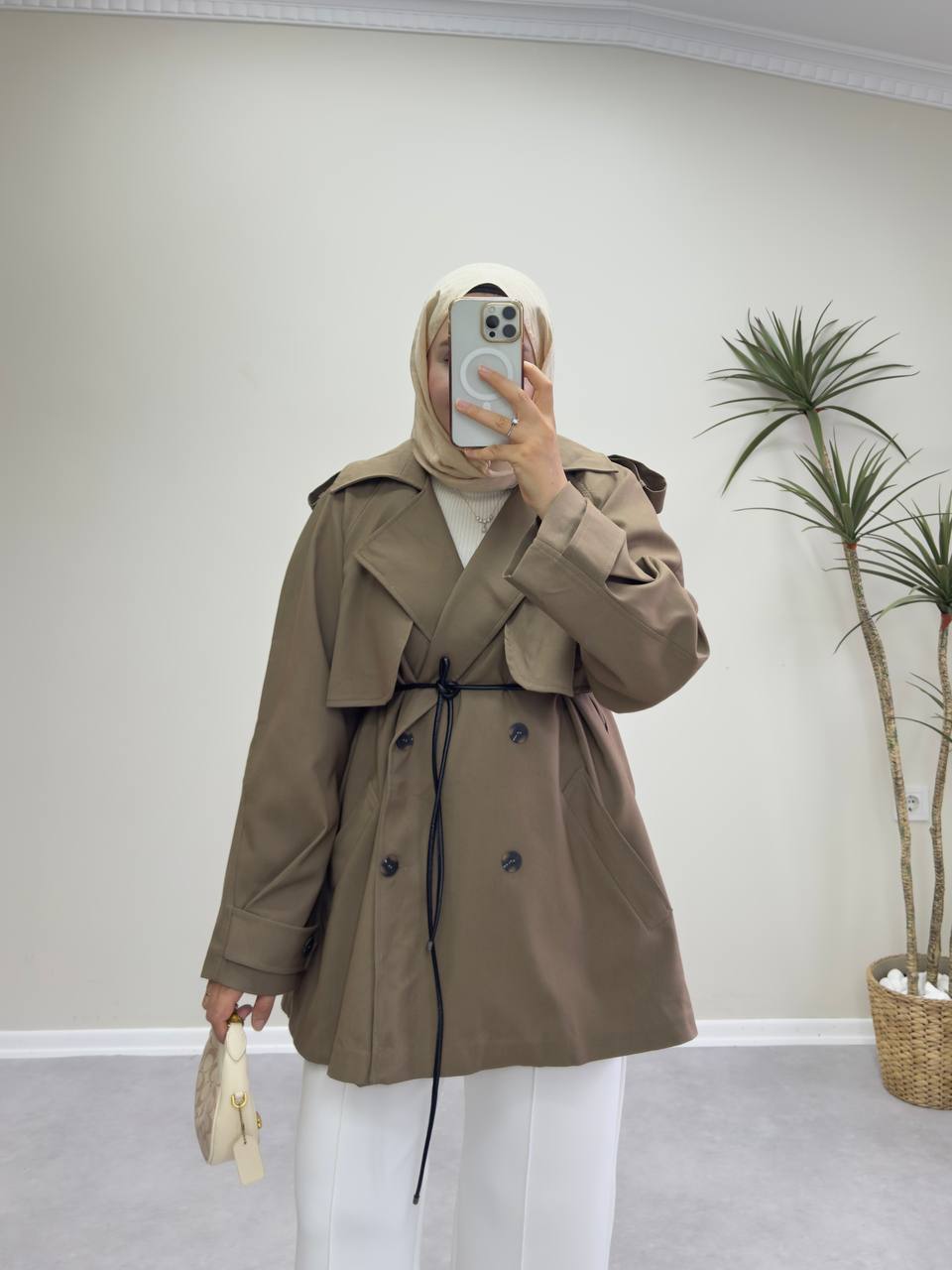 Trenç boy 83 cm dir. İç kısmı astarlıdır, cepleri mevcut Bir adet deri kemeri mevcut. Standart beden 36-44 beden uyumludur.