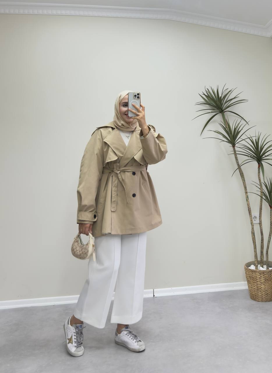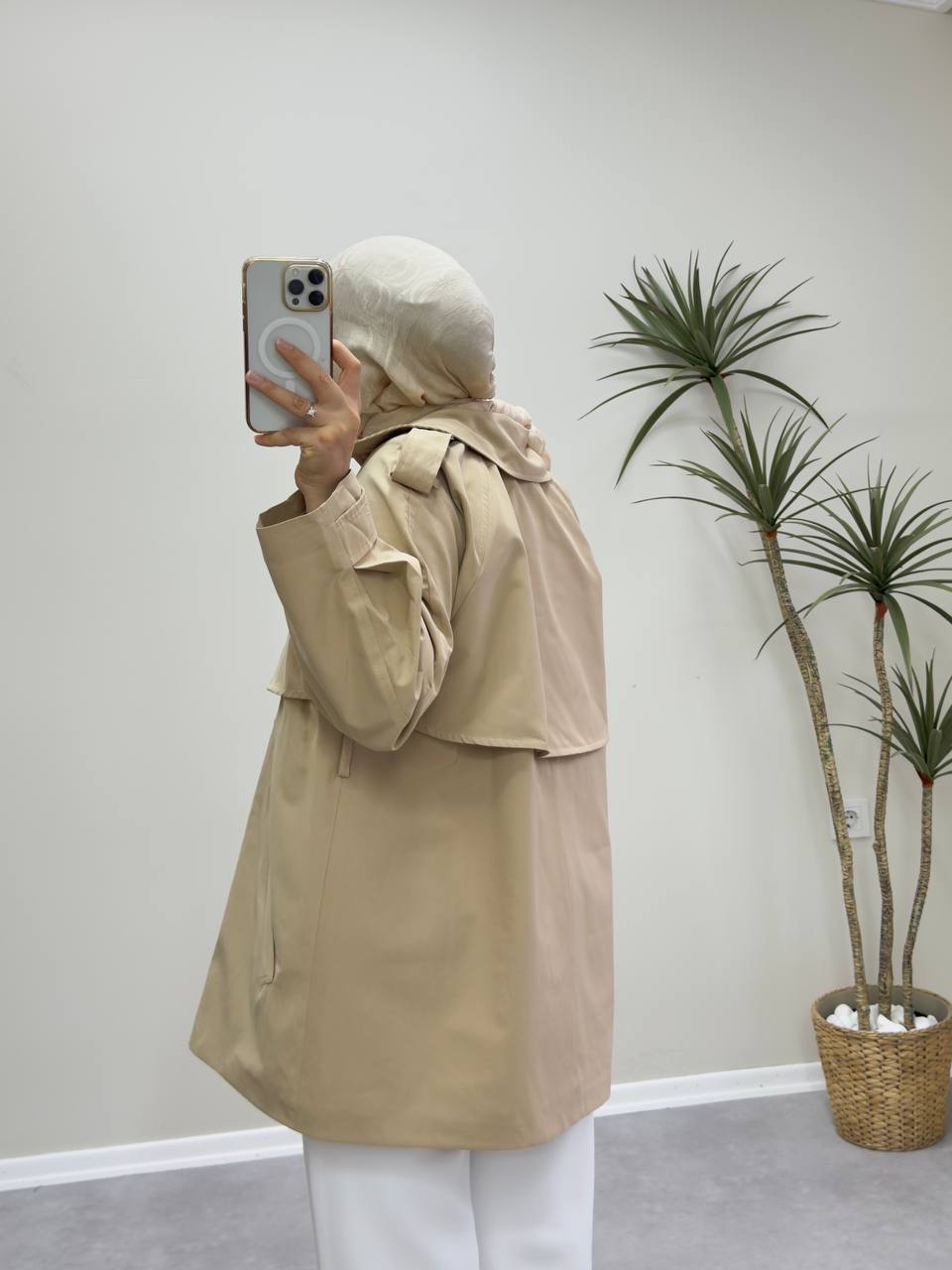 Pamuklu paraşüt kumaştır. İç kısmı astarlıdır cepleri mevcut boy 80 cm standart beden 36-44 beden uyumludur.