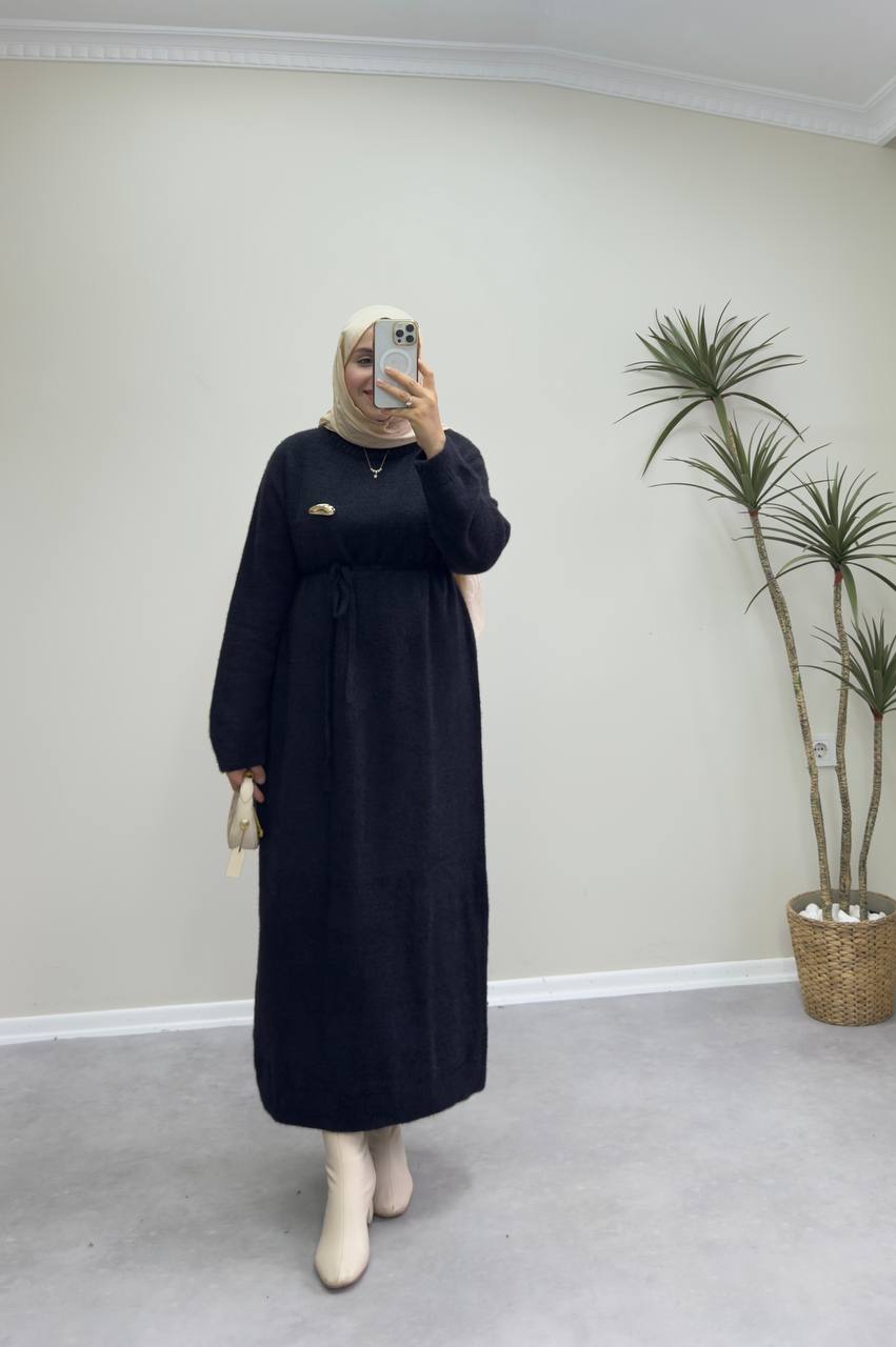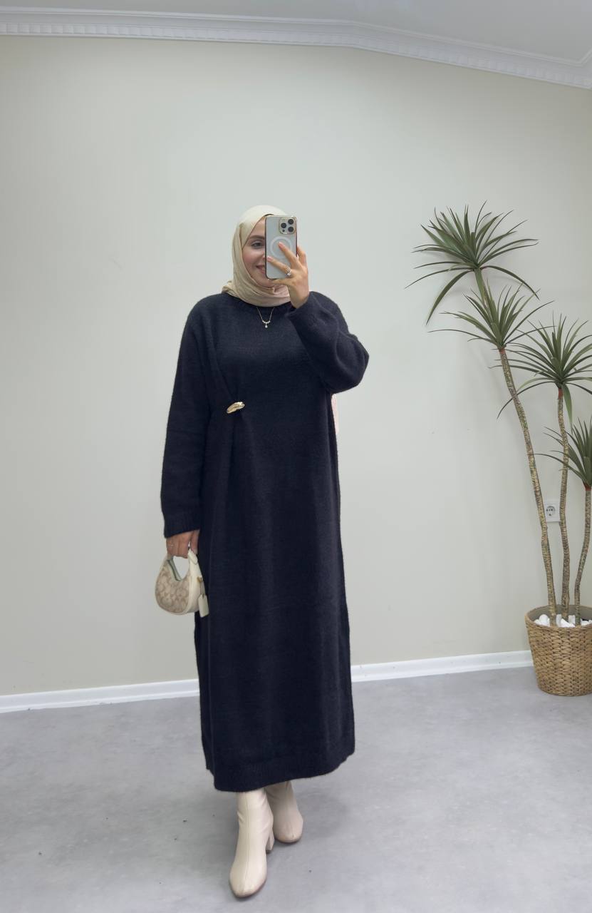 2660 - Broşlu Triko Elbise - Siyah