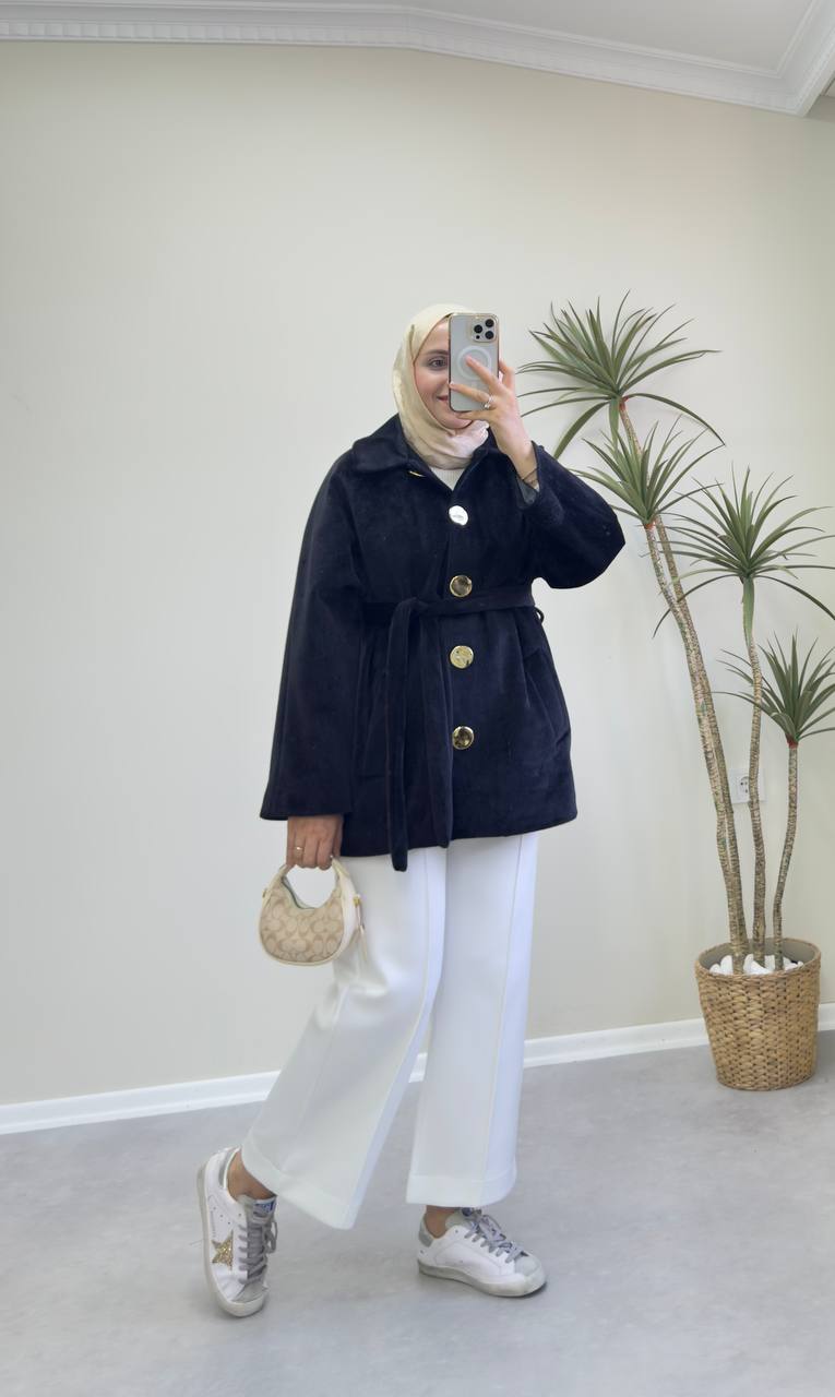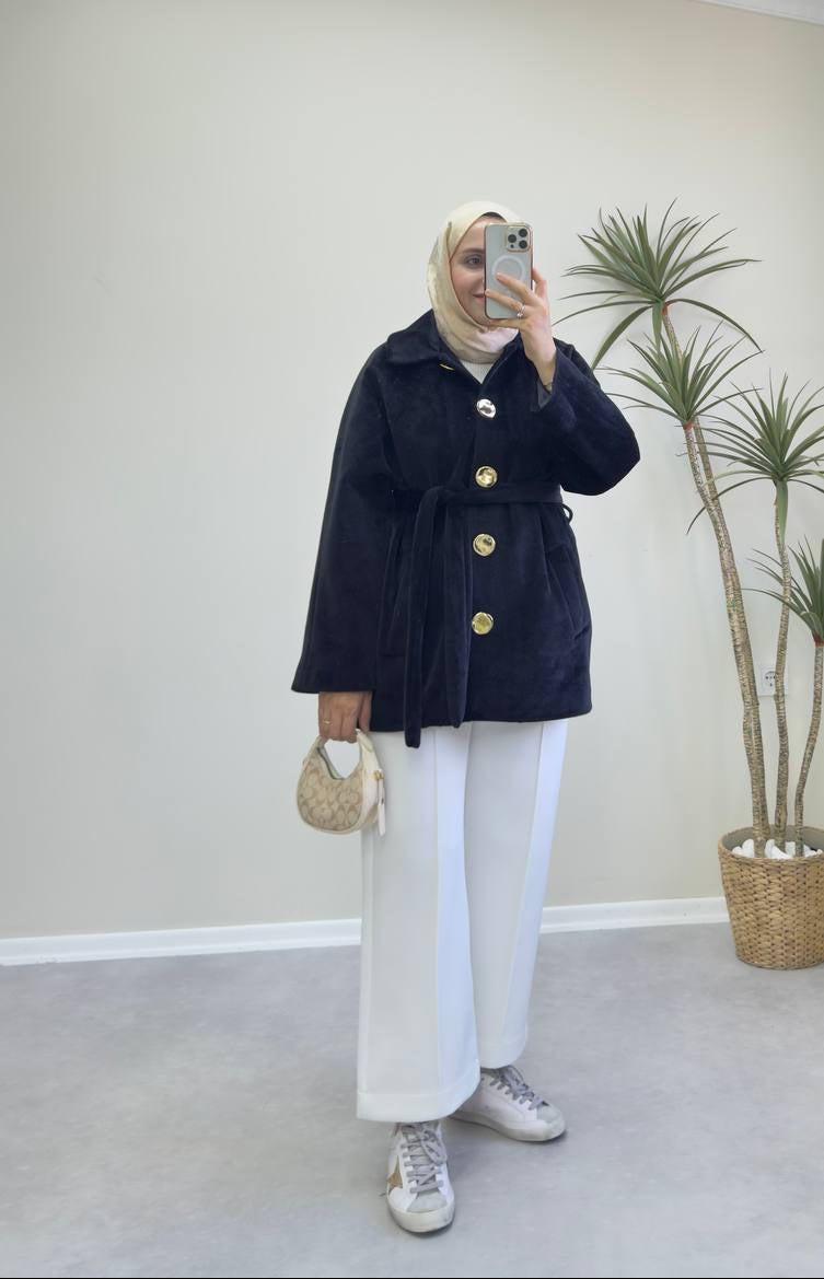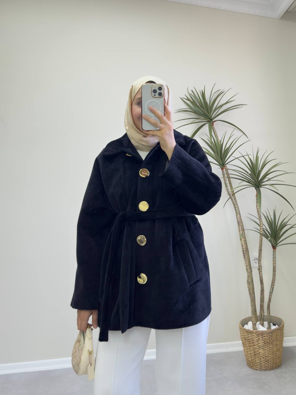 Boy 80 cm dir. Bir adet seyyar kuşağı mevcuttur, iç kısmı kollar dahil astarlıdır. Cepleri bulunmaktadır.