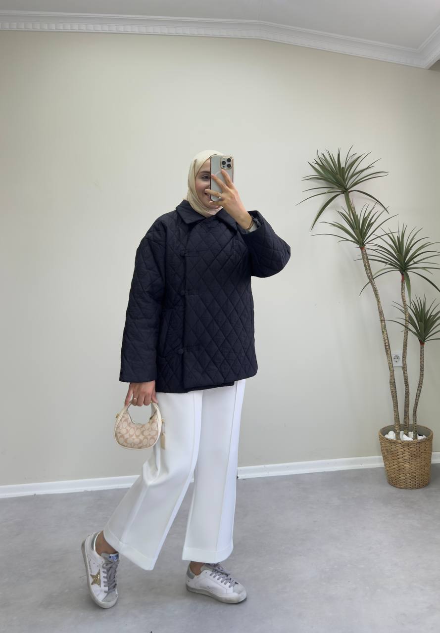 Kapitone kumaştır iç kısmı kollar dahil astarlıdır. Ön kısmı düğmelidir cepleri mevcut 72 cm dir.