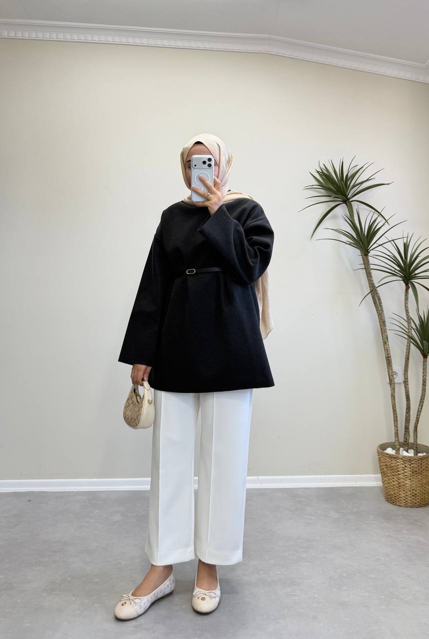 ince kaşe kumaştan üretilmiştir. Tam Kalıptır kendi bedeninizi tercih edebilirsiniz. Boy 75 cm dir. ( Kemer dahil değildir.)