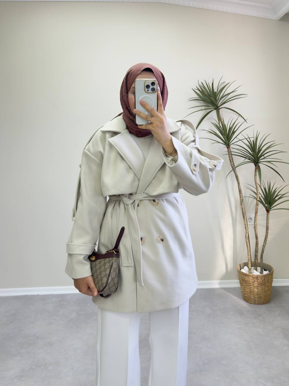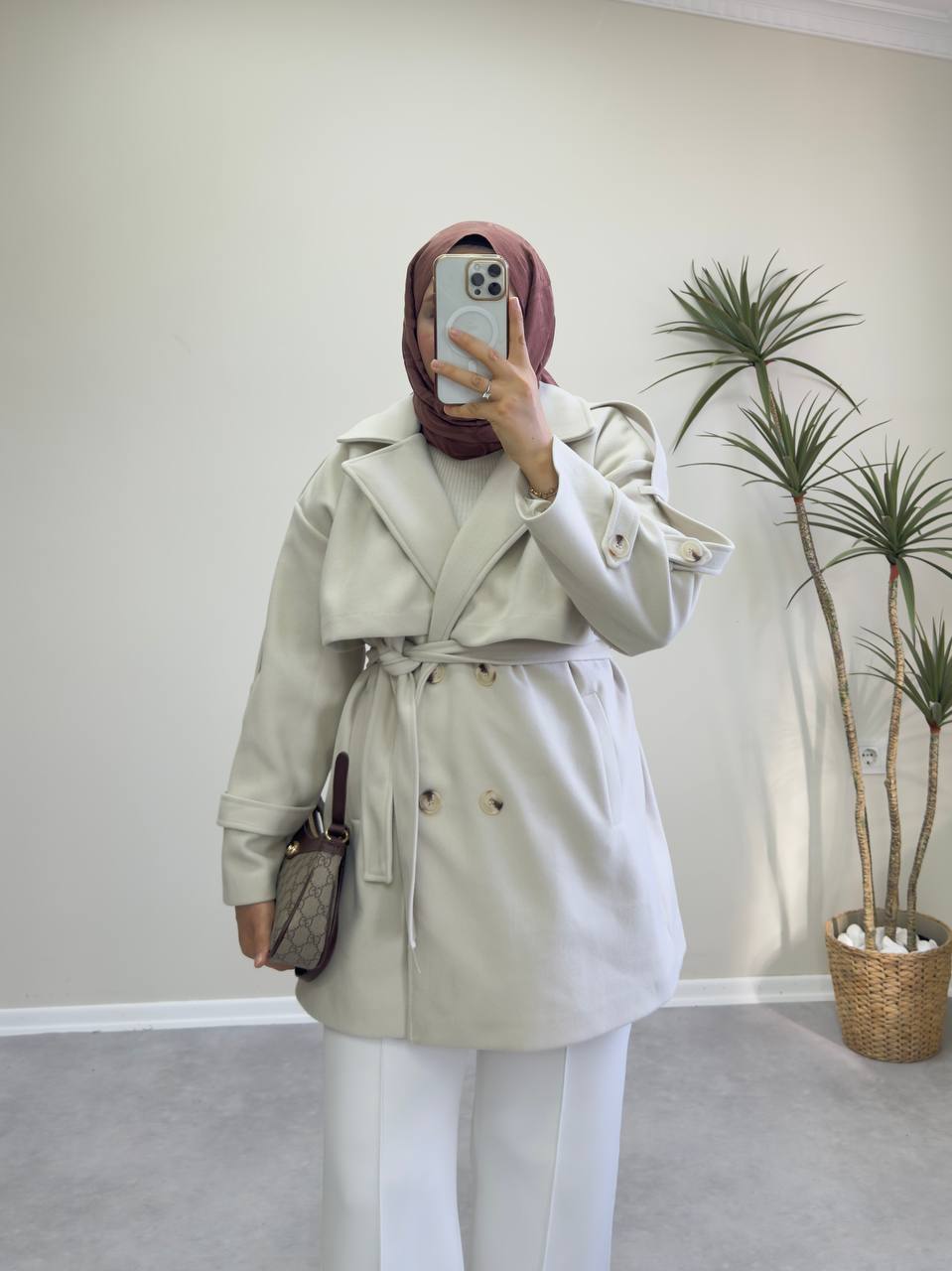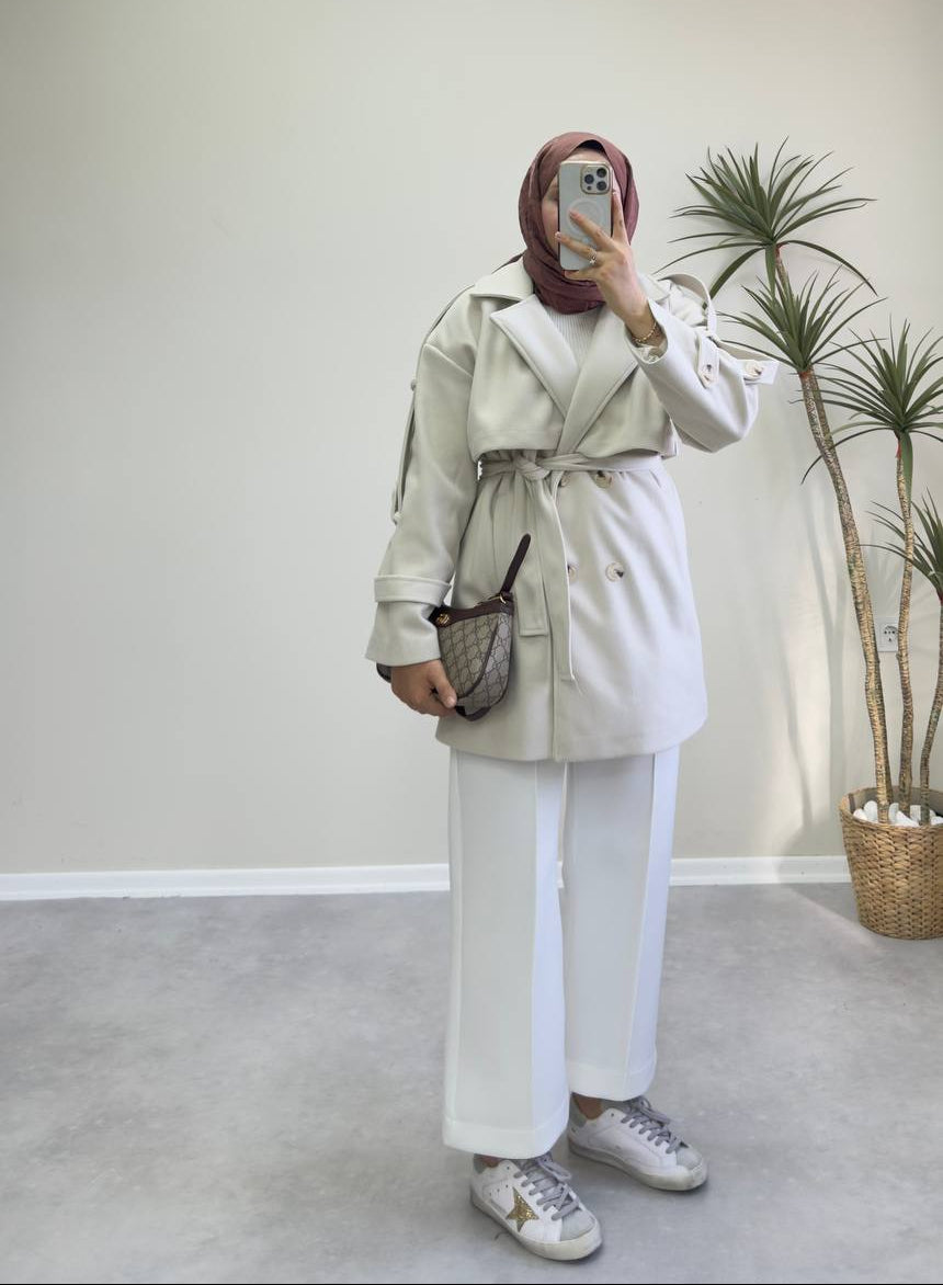 2776 - Kısa Kaşe Kaban - Krem