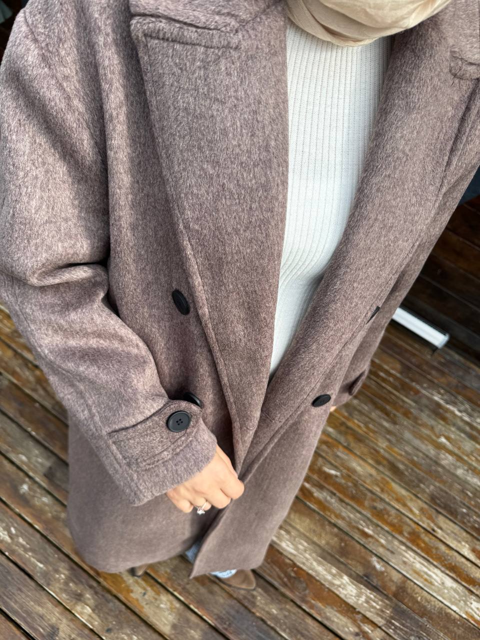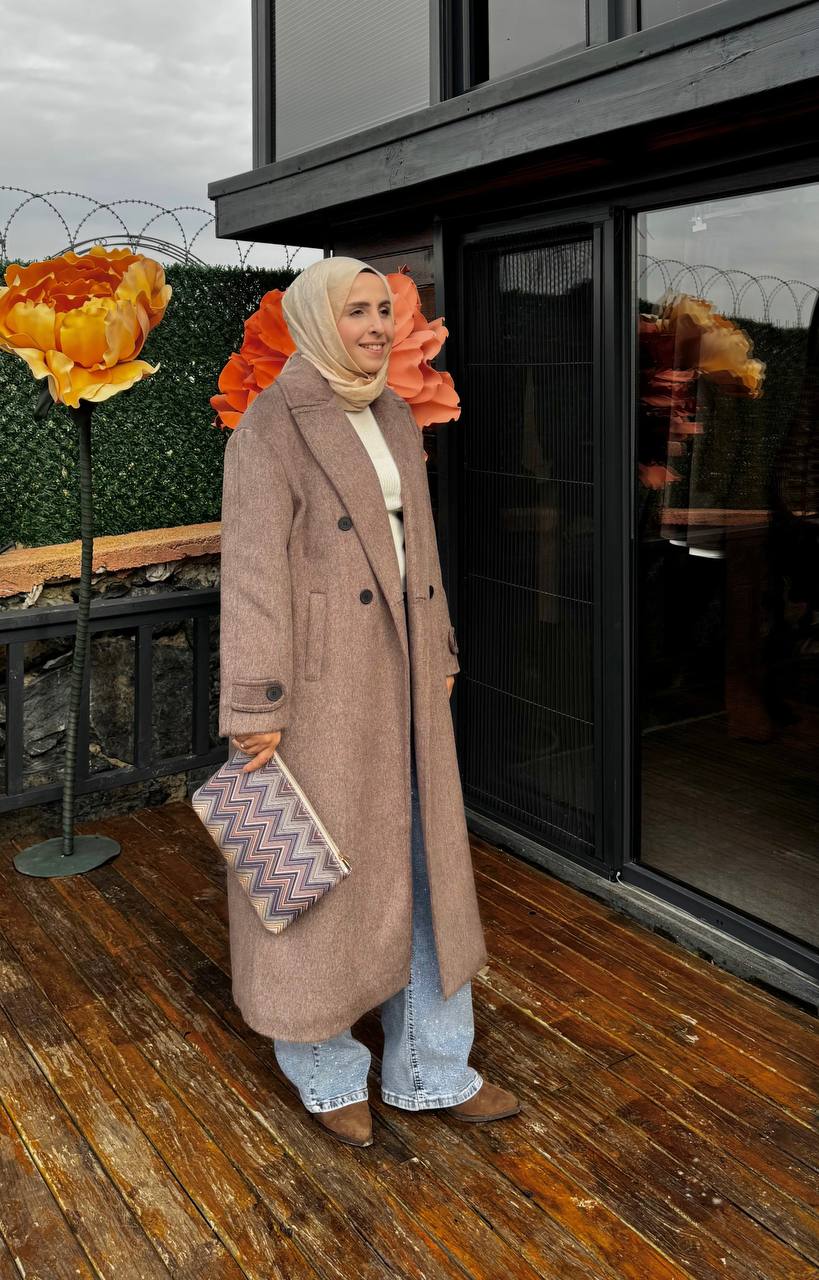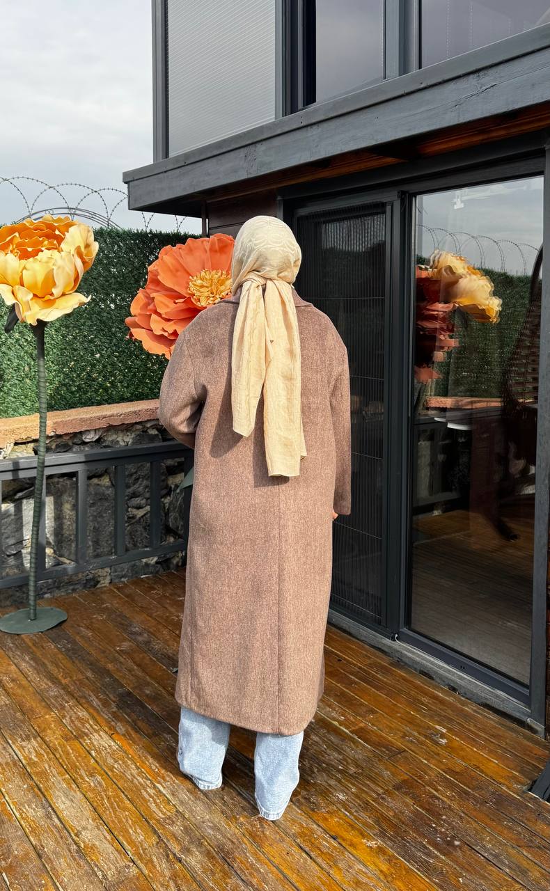 Tay tüyünden üretilmiştir. İç kısmı kollar dahil astarlıdır. İki adet cebi bulunmaktadır. Boy 123 cm tam kalıptır.