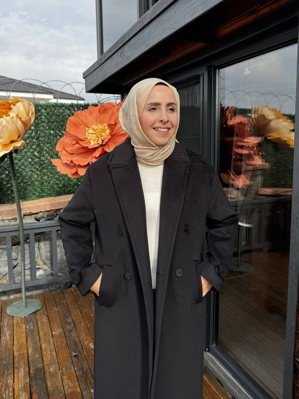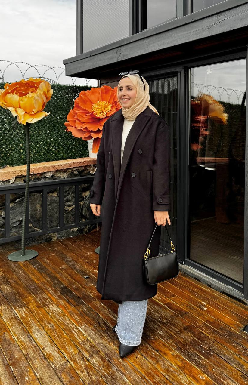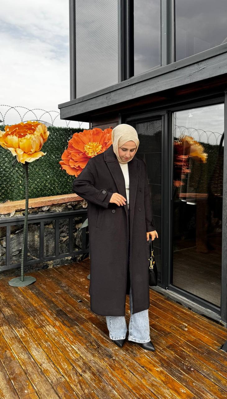 Tay tüyünden üretilmiştir. İç kısmı kollar dahil astarlıdır. İki adet cebi bulunmaktadır. Boy 123 cm tam kalıptır.