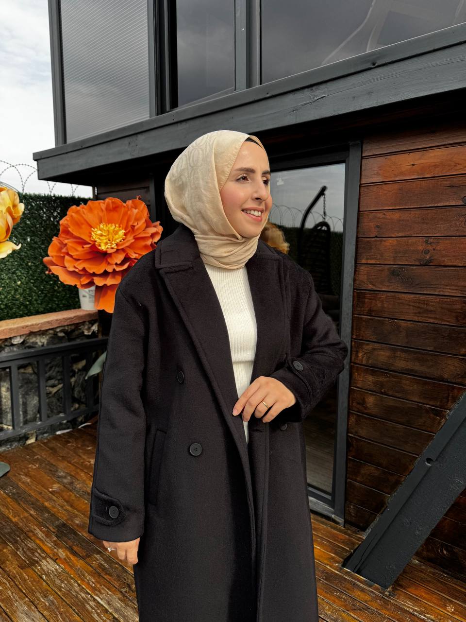 Manken ölçüleri 59 kg 165 cm boy 1 beden tercih etmiştir.