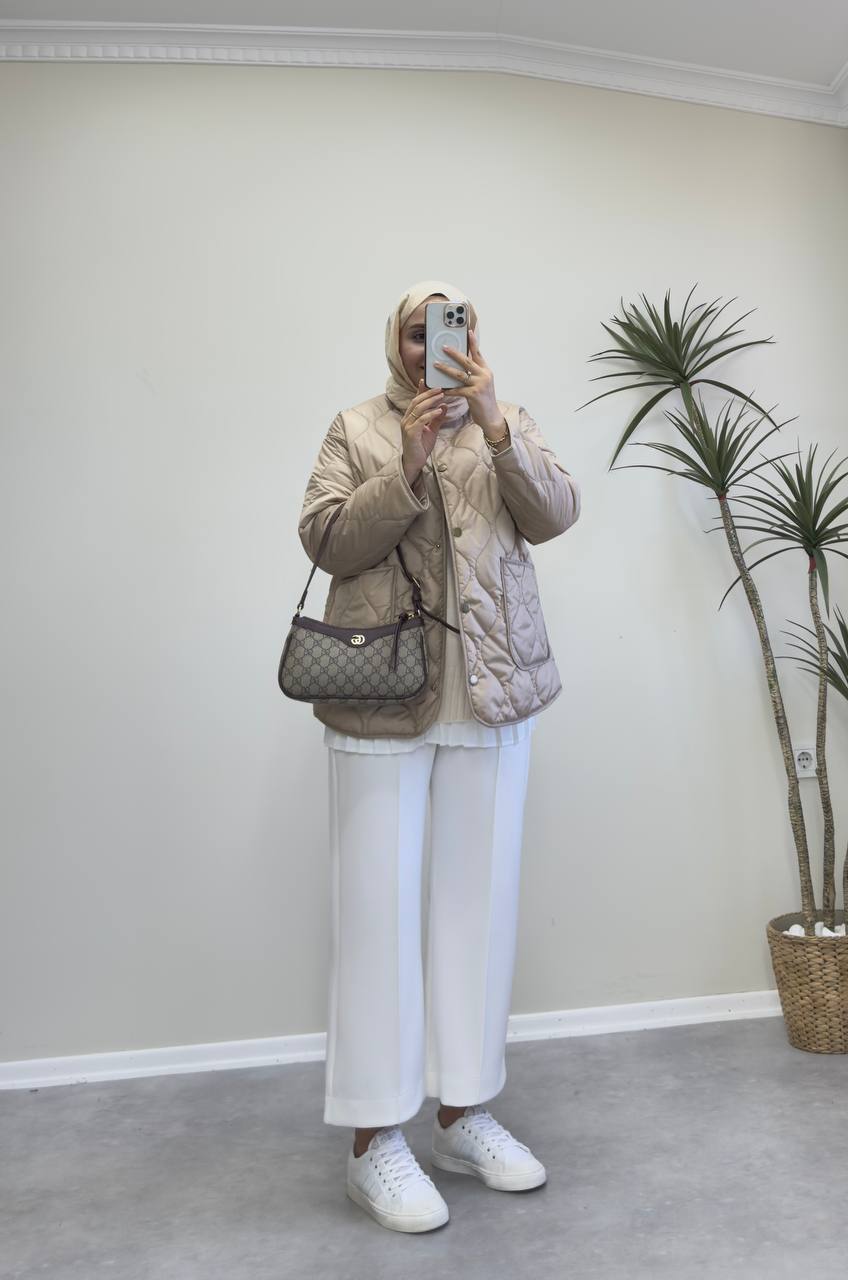 Manken ölçüleri 59 kg 165 cm boy 1 beden tercih etmiştir.