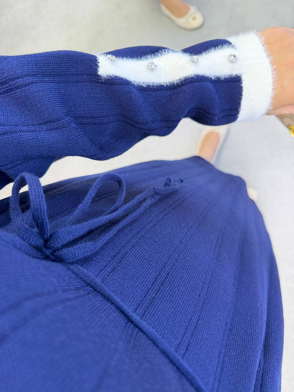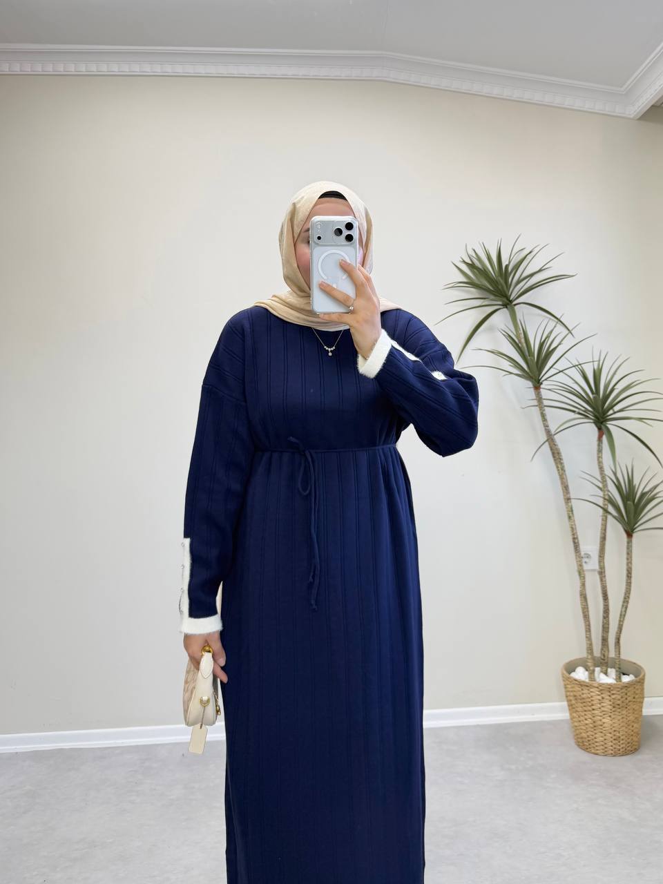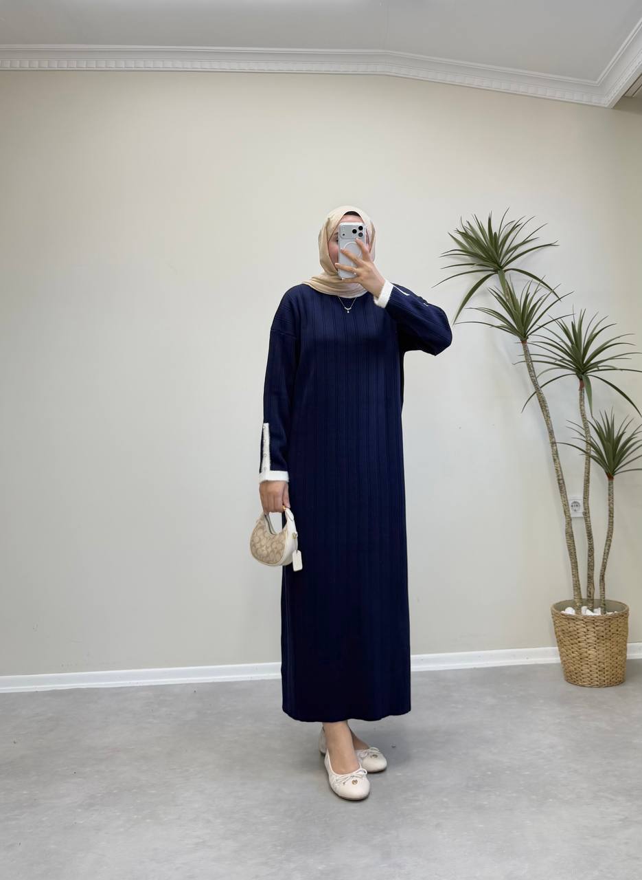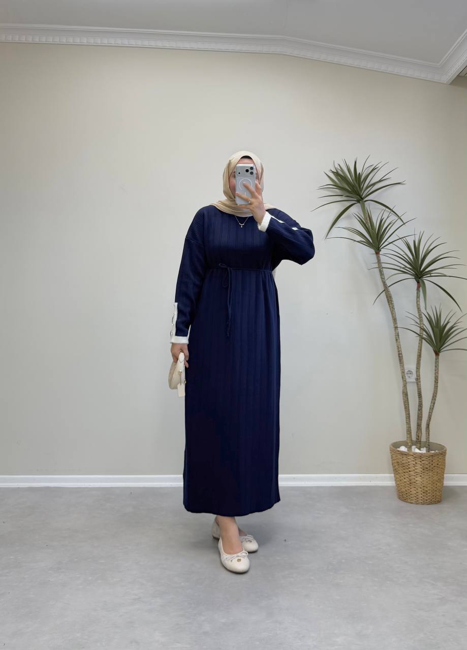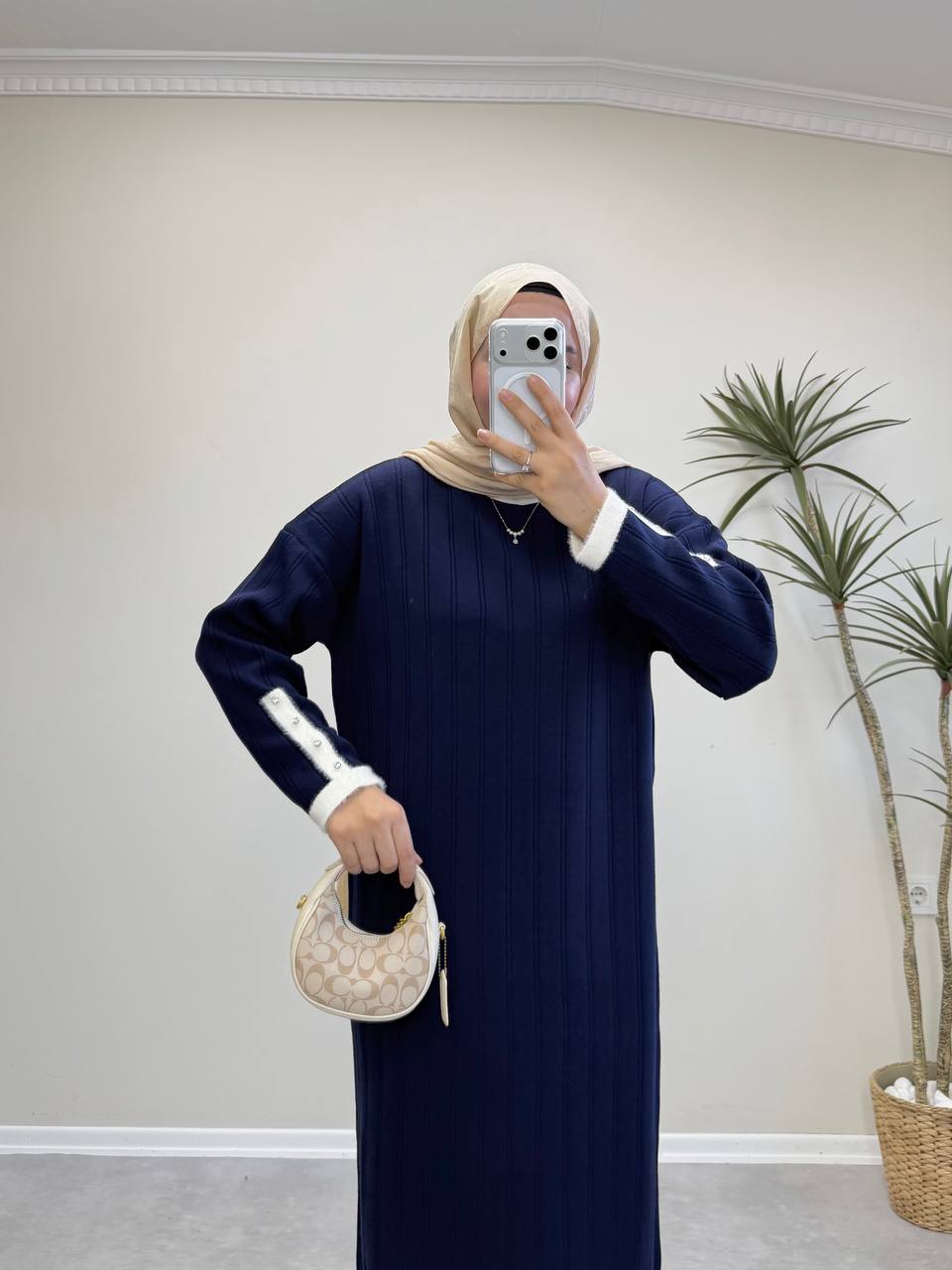 2851 - Kolu Taşlı Triko Elbise - Lacivert