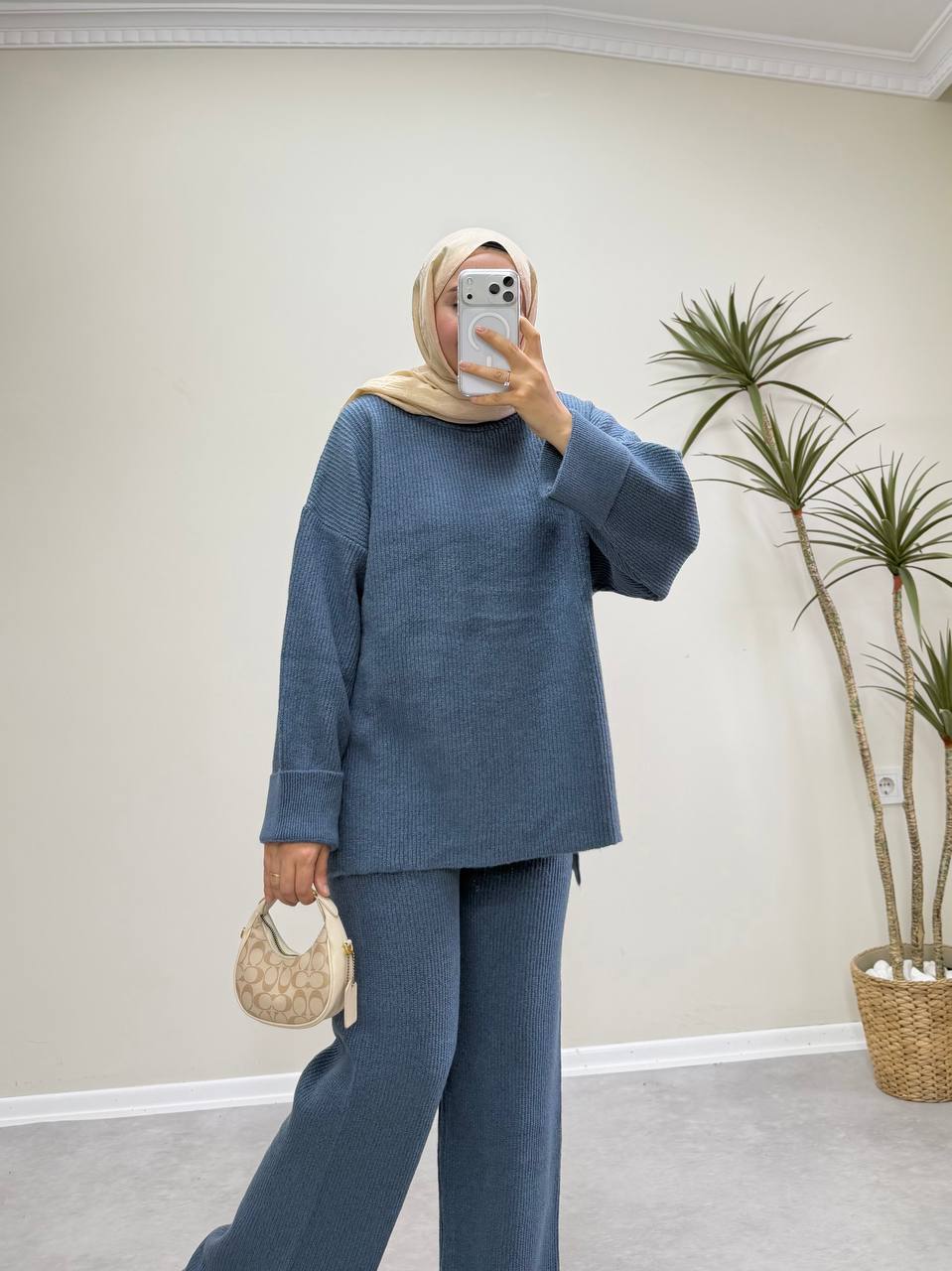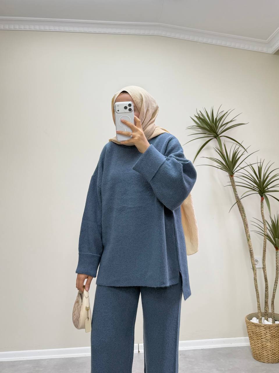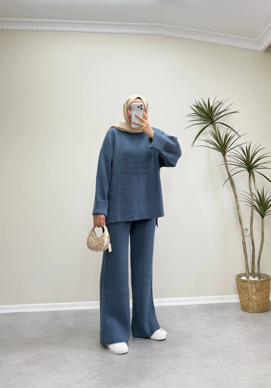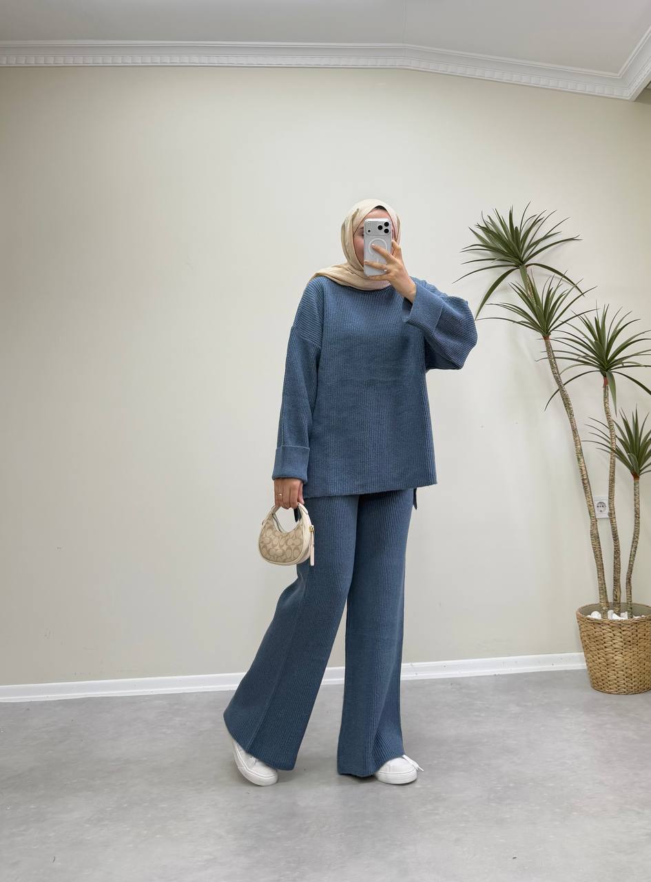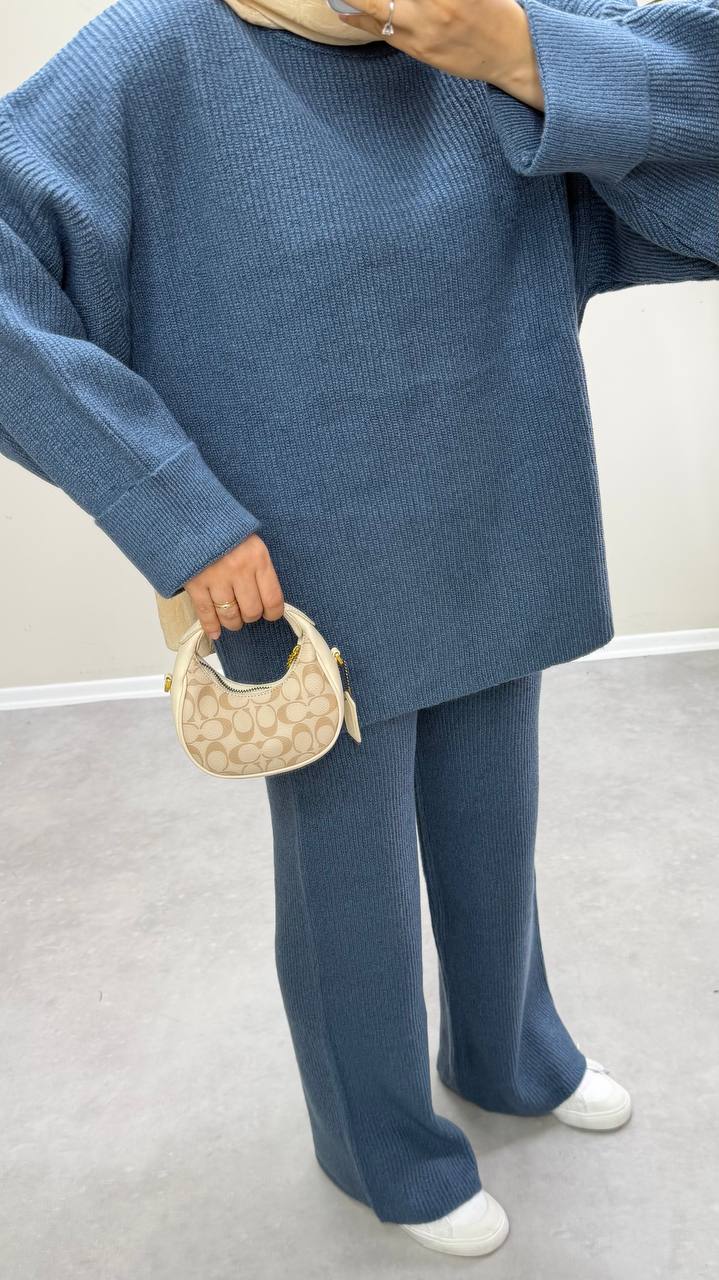 2875 - Örme Triko Pantolon Takım - Mavi