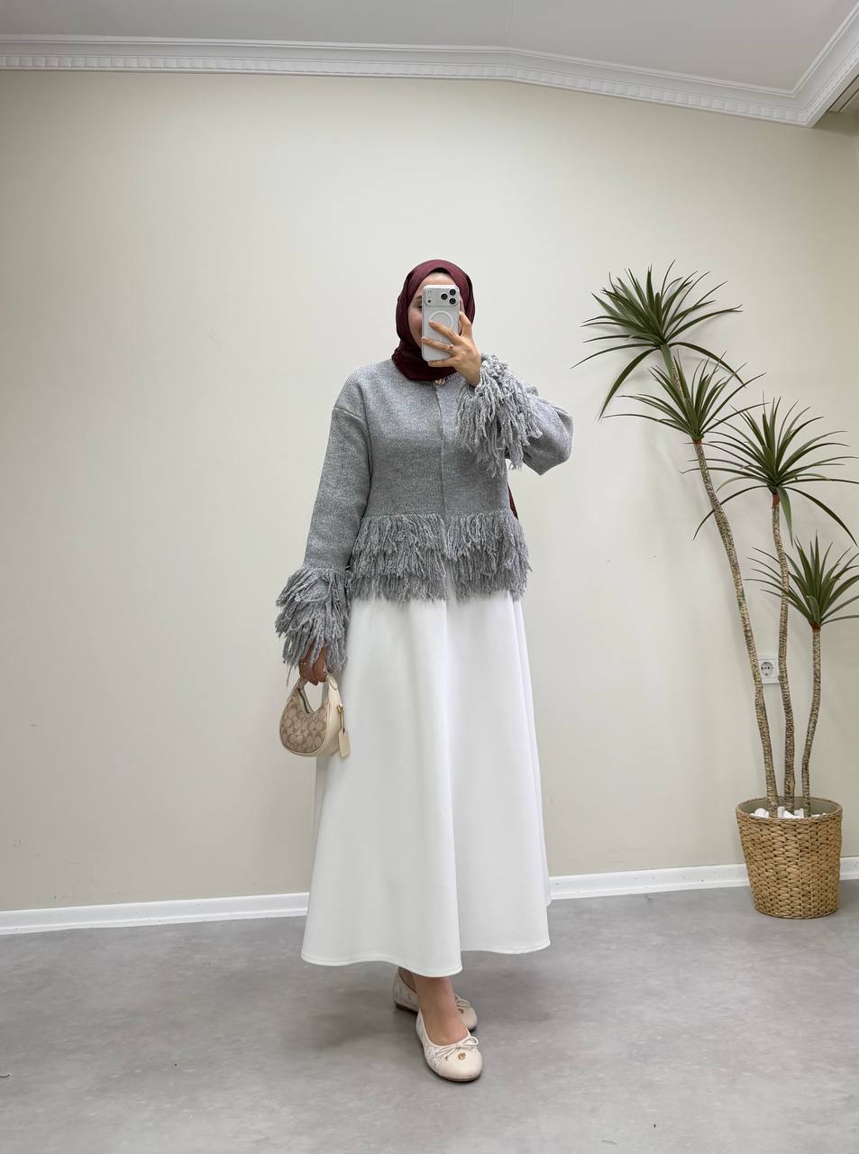 triko kumaştır. Boy 58 cm dir. Standart 36-42 beden uyumludur.