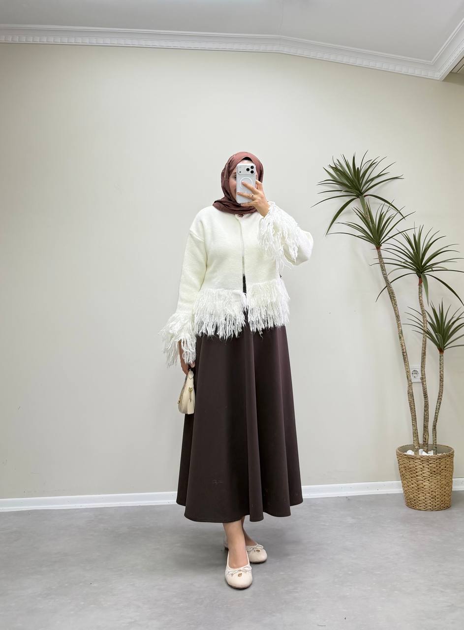 triko kumaştır. Boy 58 cm dir. Standart 36-42 beden uyumludur.